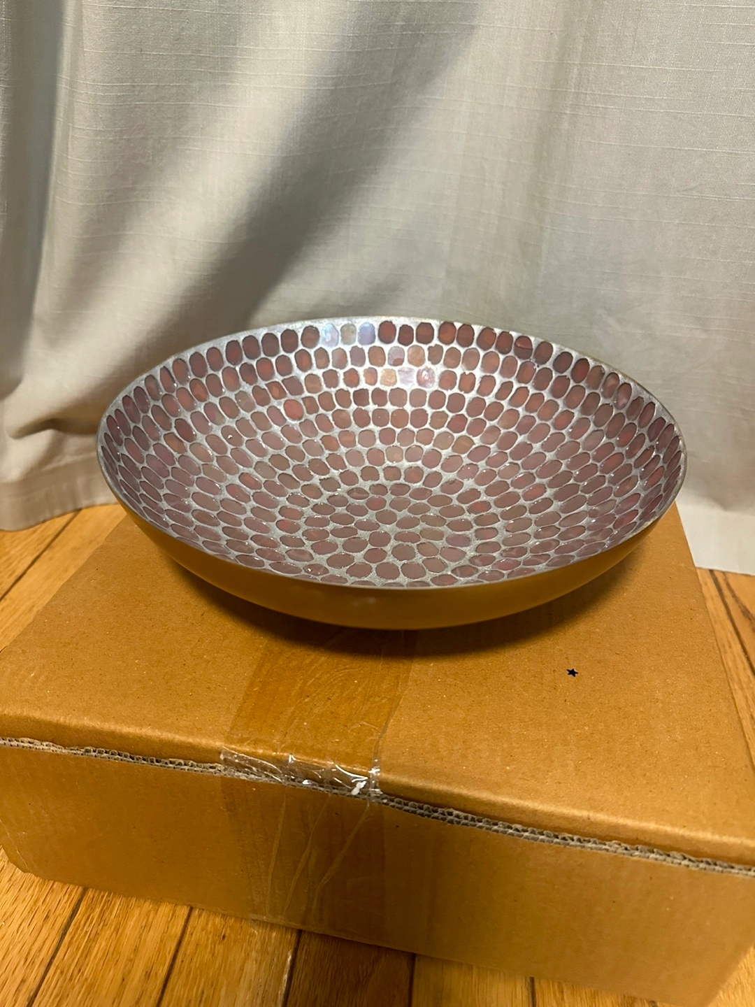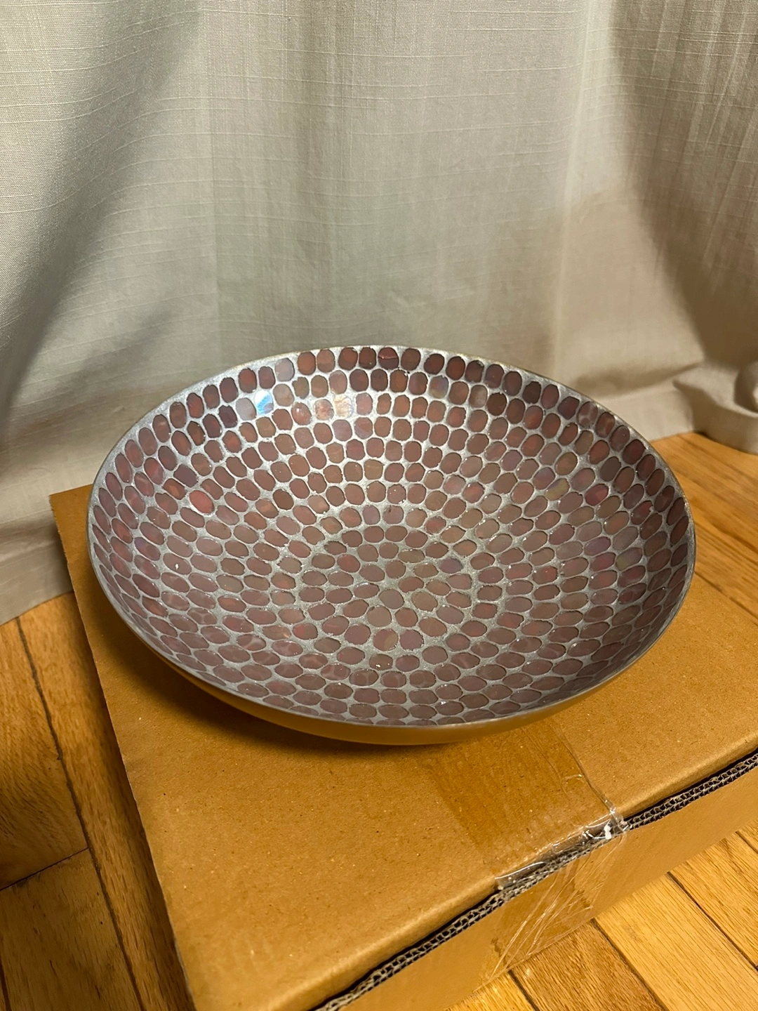 Large decorative serving bowl with a mosaic design. Great for fruit, candy, or keys.