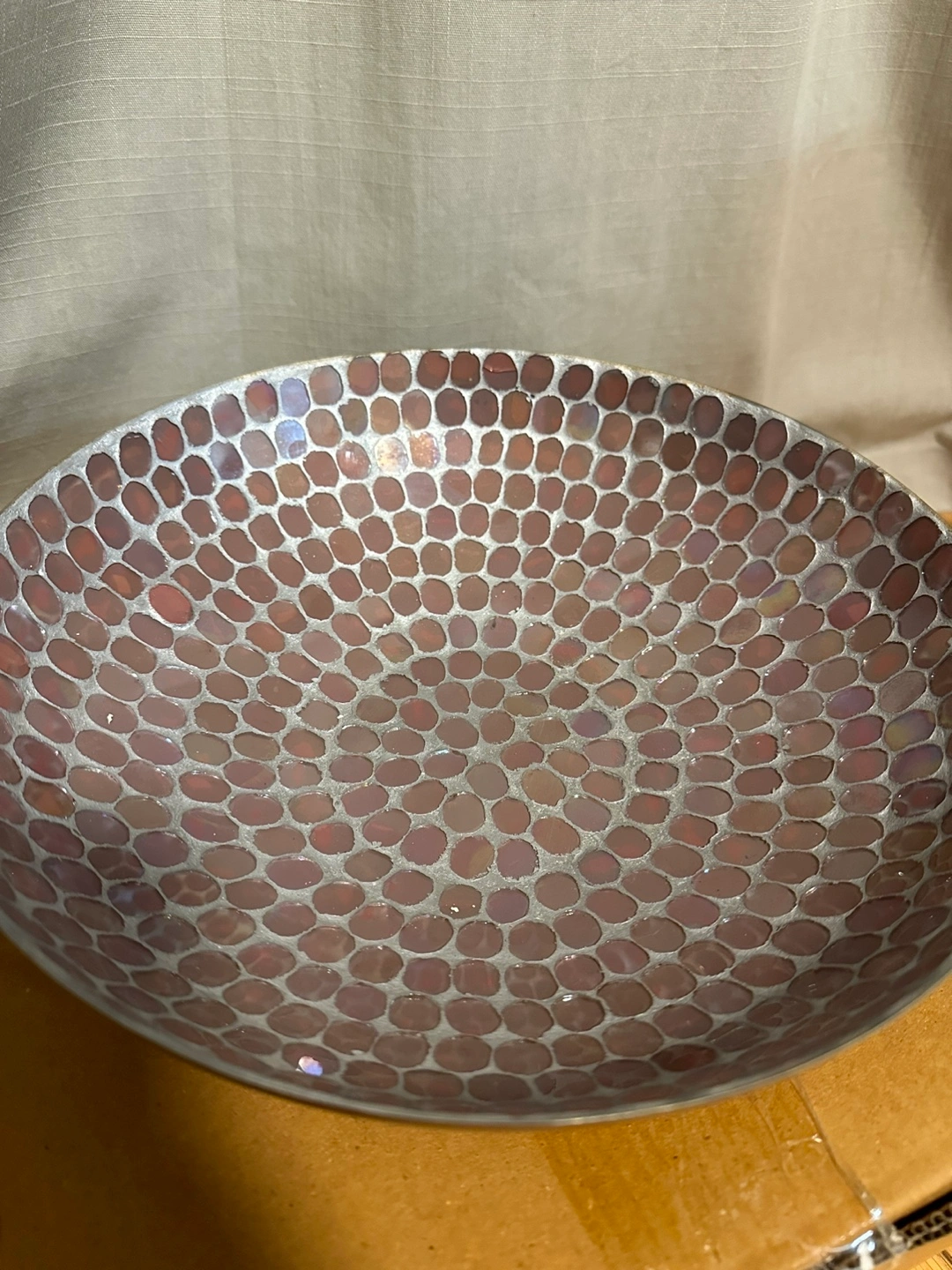 Large decorative serving bowl with a mosaic design. Great for fruit, candy, or keys.