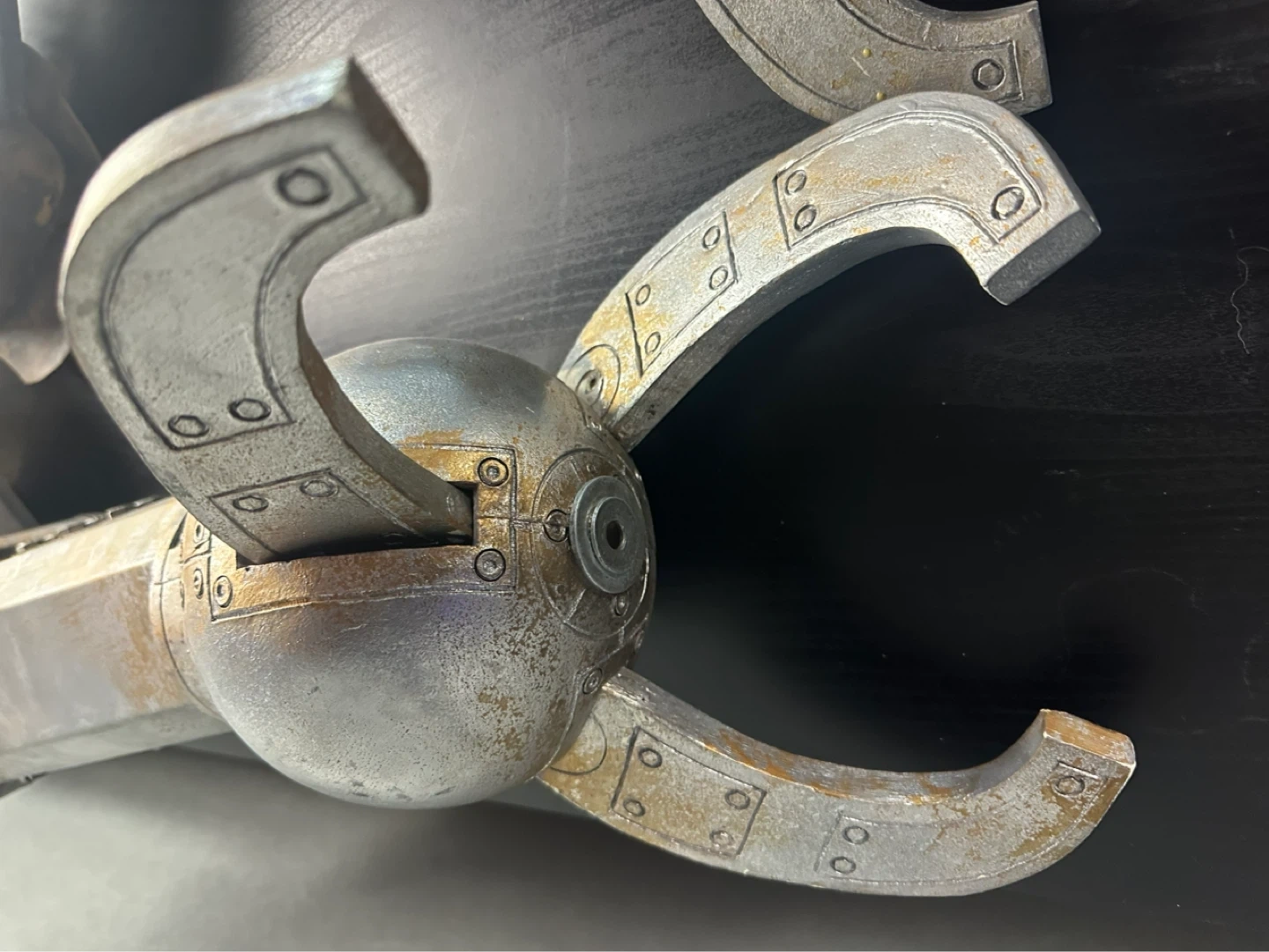 A pair of metallic robotic arms with a weathered, industrial look. They feature articulated joints and claw-like end effectors. Great for display or as a unique prop!