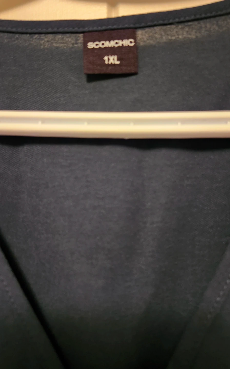 This Scomchic wrap dress is a size 1XL and features a beautiful green colour. It has long sleeves with ruffled cuffs and a ruffled hemline. The dress is made from a silky material and includes a tie belt for a customizable fit.