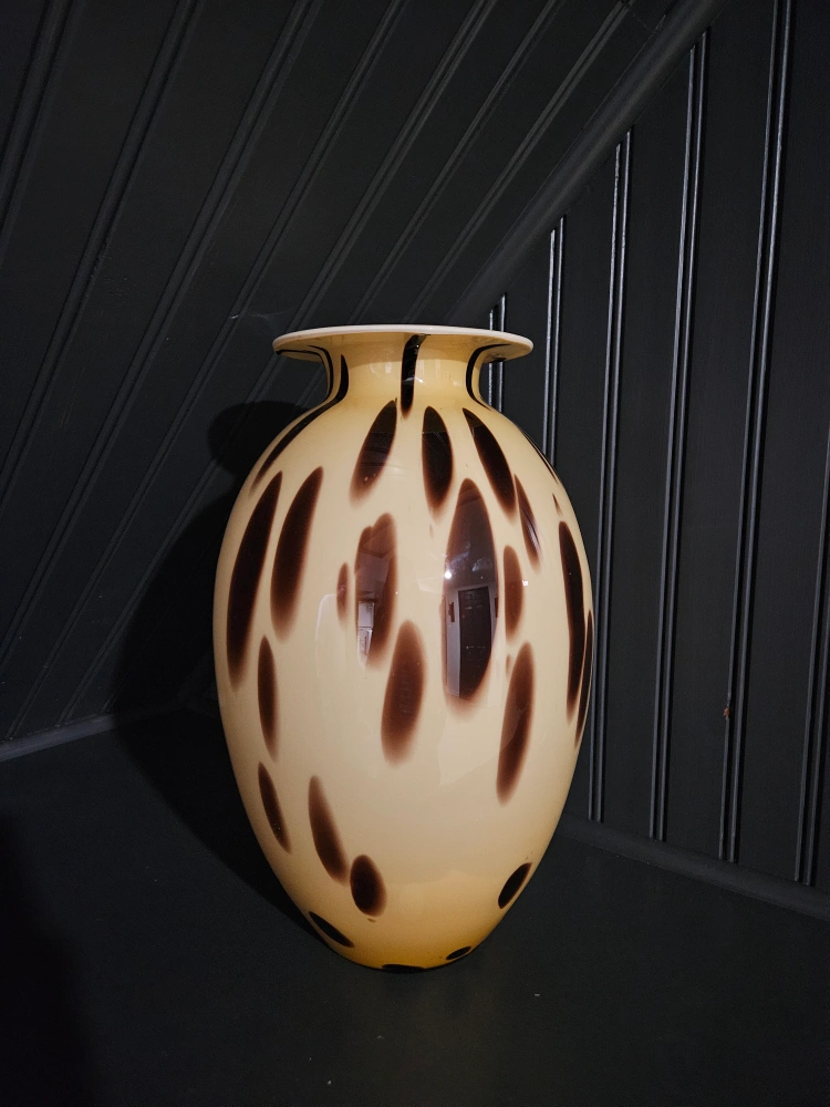 13Add a touch of unique style to your home with this decorative vase! It features a beige base colour with brown spots, making it a standout piece for any room