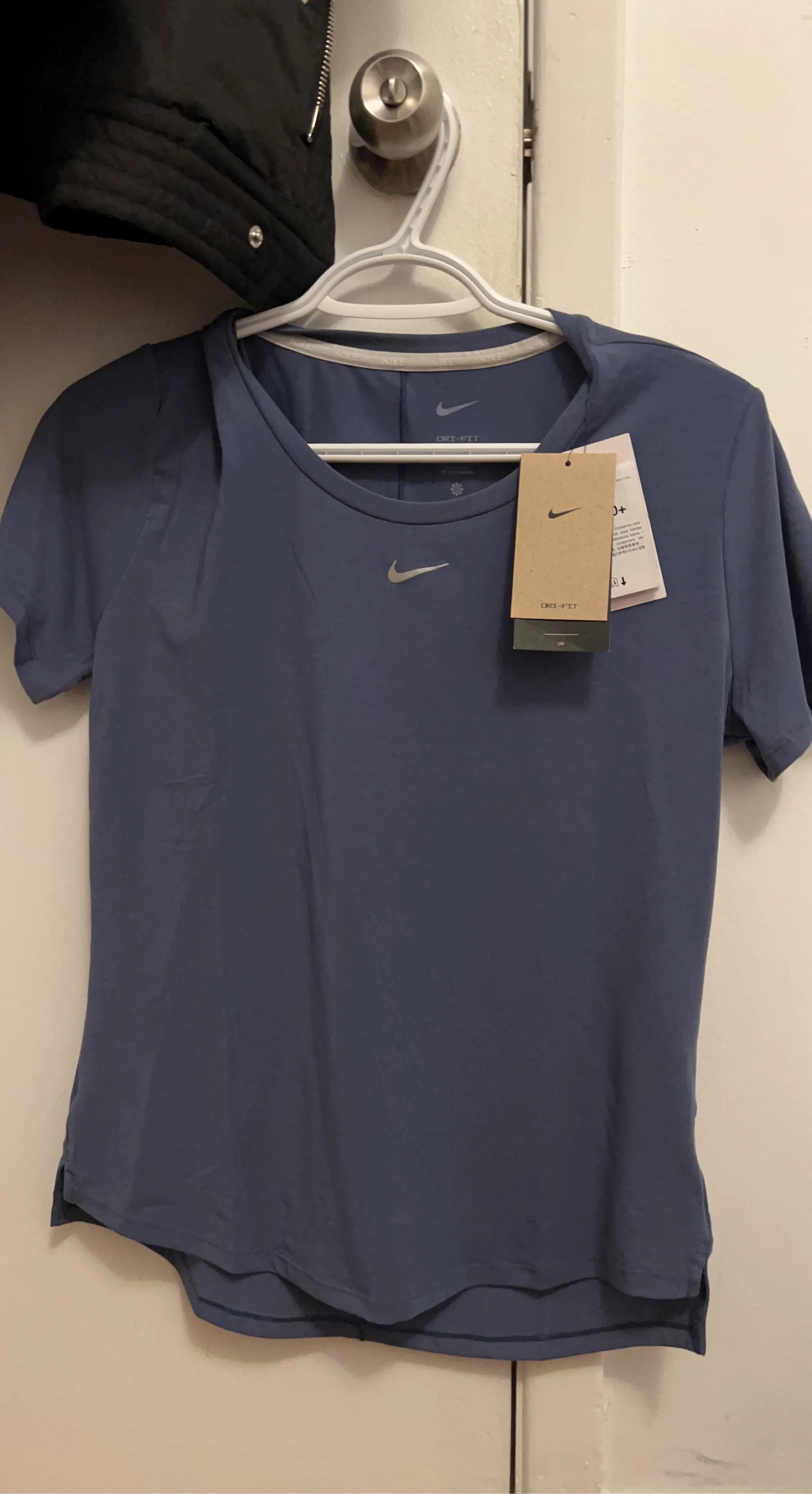 This is a Nike Dri-FIT t-shirt. It's made with a lightweight, breathable fabric designed to keep you cool and dry. Features a relaxed fit and subtle Nike swoosh detail.