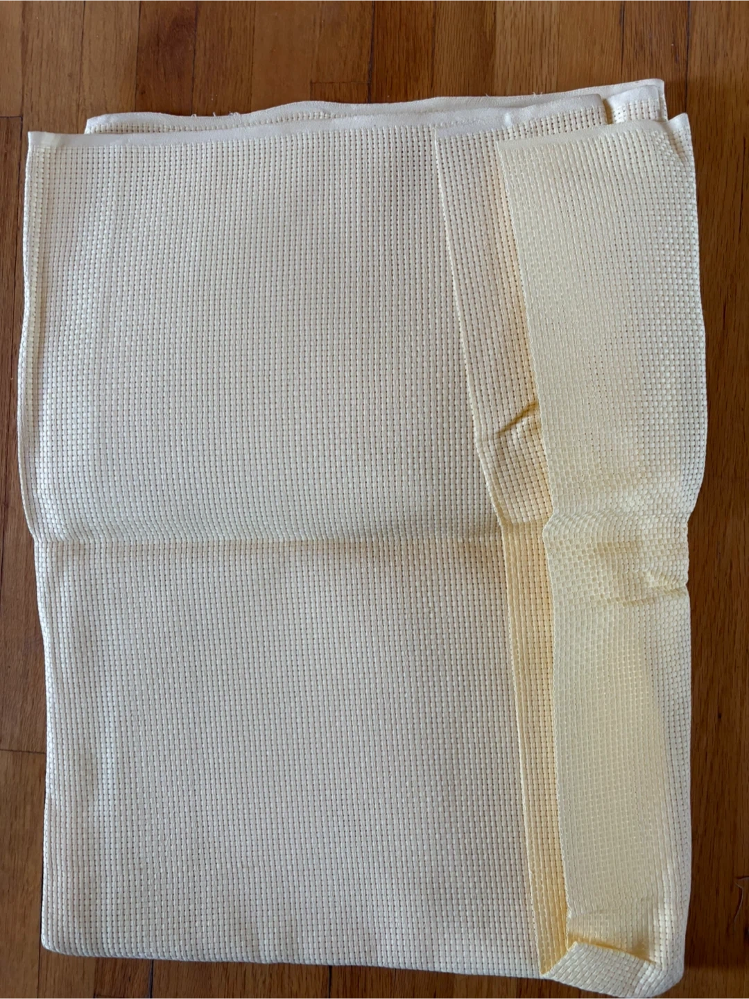 Cream textured throw blanket. It's made of a soft, breathable fabric. This blanket is a nice size for cozying up on the couch.pickup at Morley trail NW