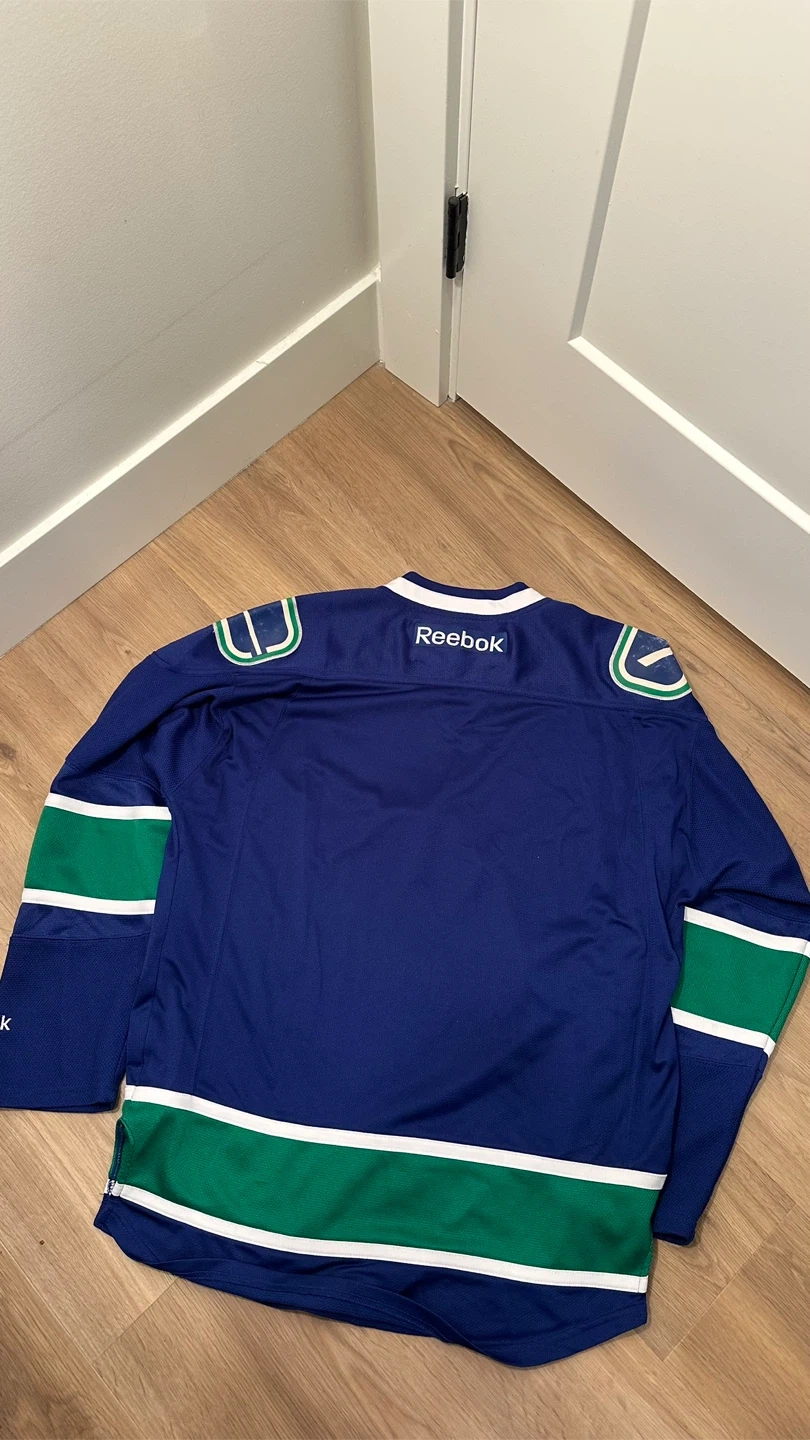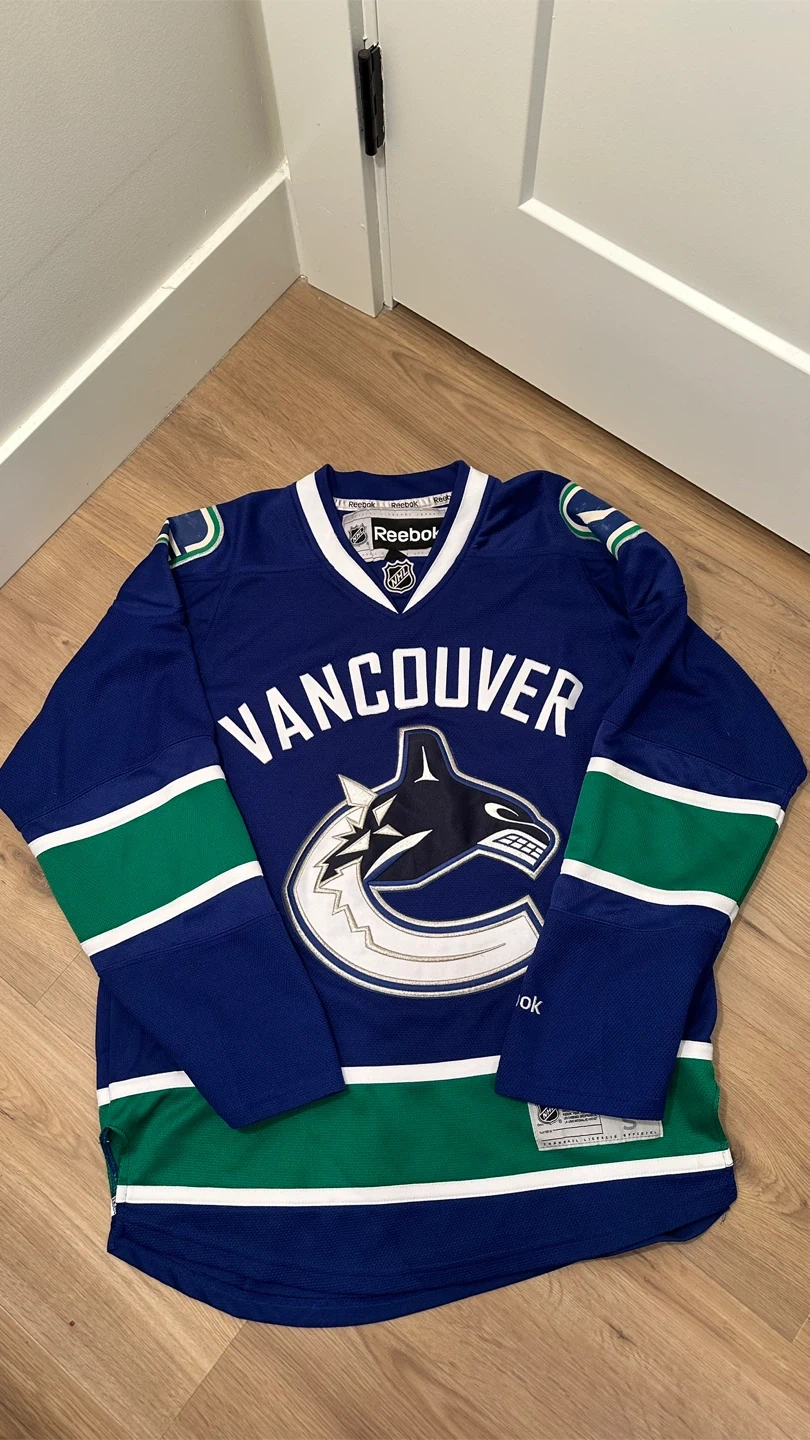 Selling a Vancouver Canucks Reebok jersey in great condition! The jersey features the classic blue, green, and white colours of the Canucks. Perfect for any hockey fan or to wear to a game! 📌SIZE SMALL ADULT