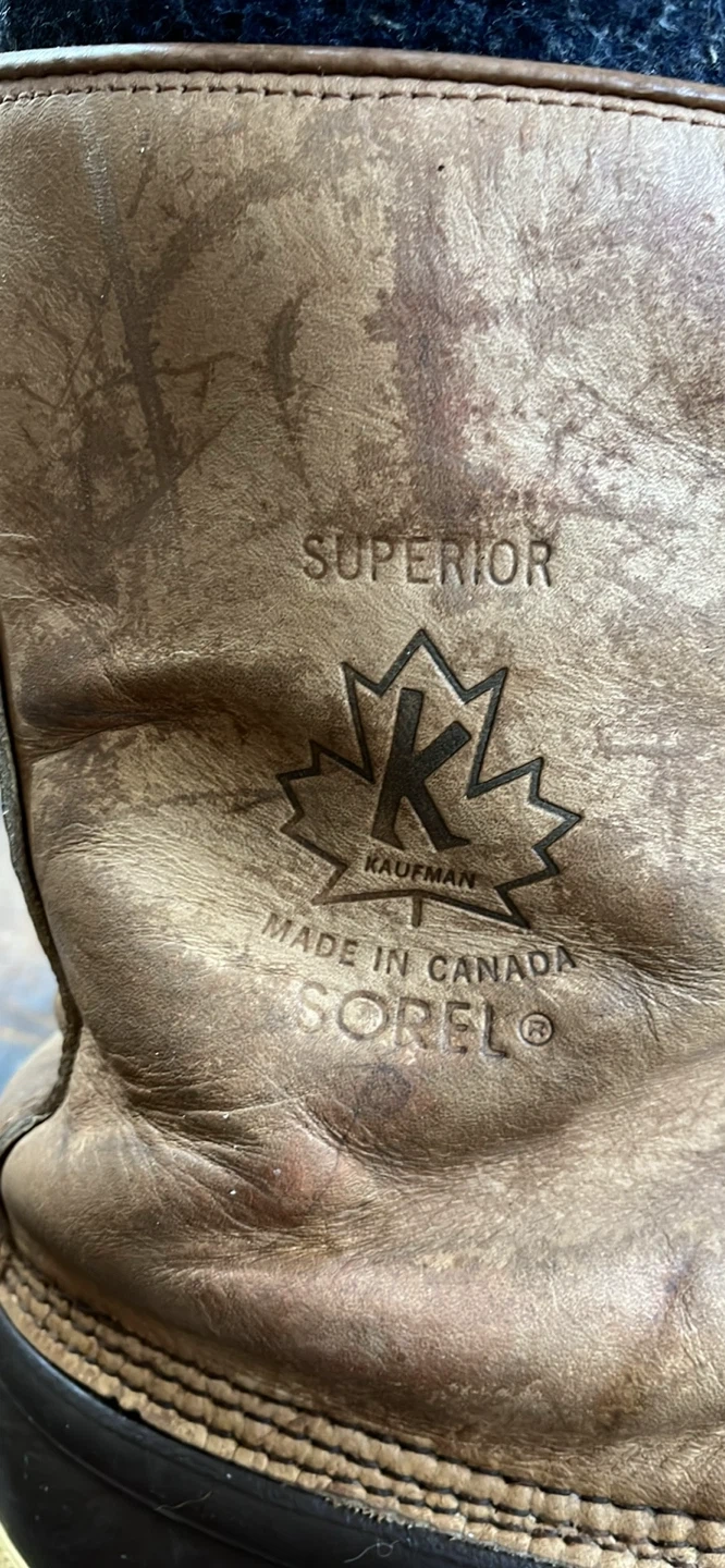 These Sorel Superior Kaufman winter boots are made in Canada. They feature a leather and rubber construction for warmth and durability. Perfect for keeping your feet toasty during the colder months!