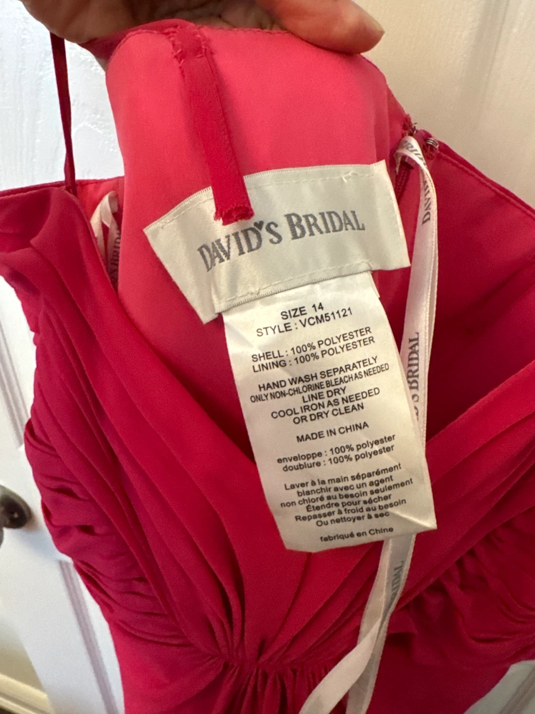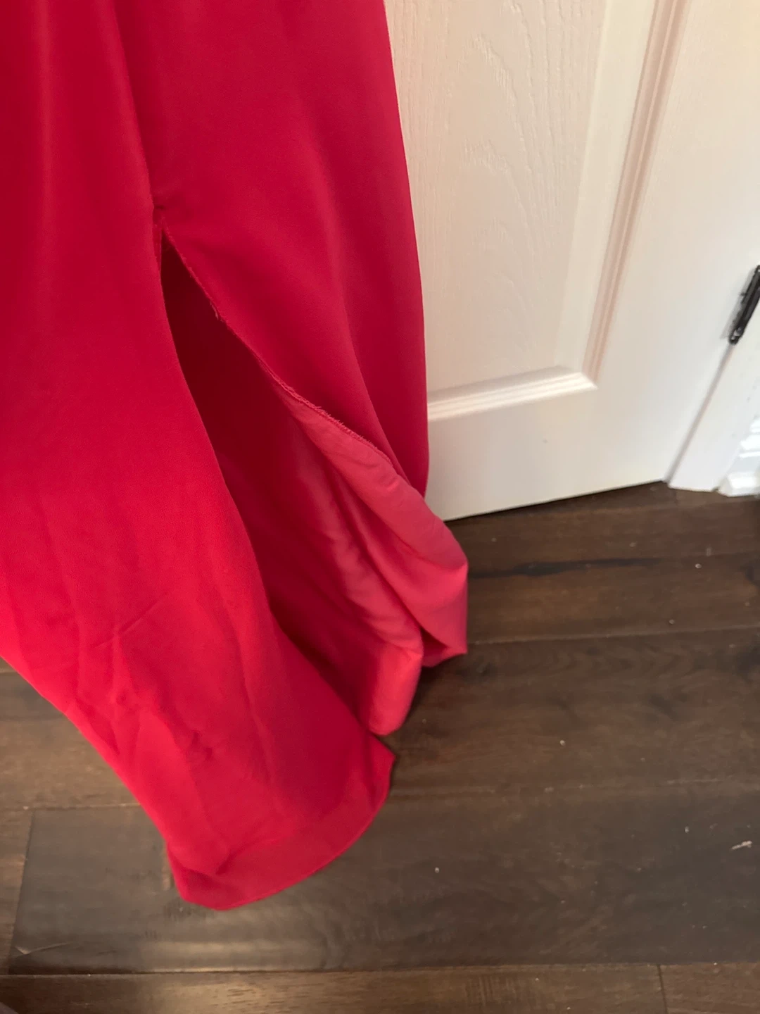 Selling a beautiful and flattering dress from David's Bridal! Spaghetti straps, flattering ruched bodice and knee length side slit. It was worn once for a wedding and is in great condition. Perfect for a special occasion!