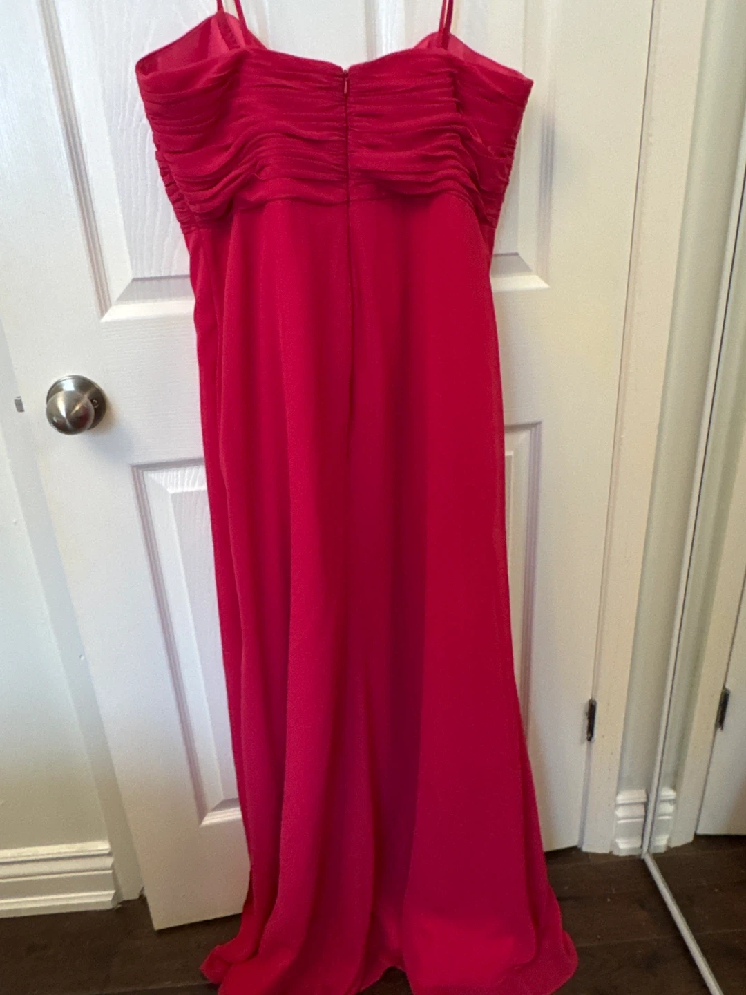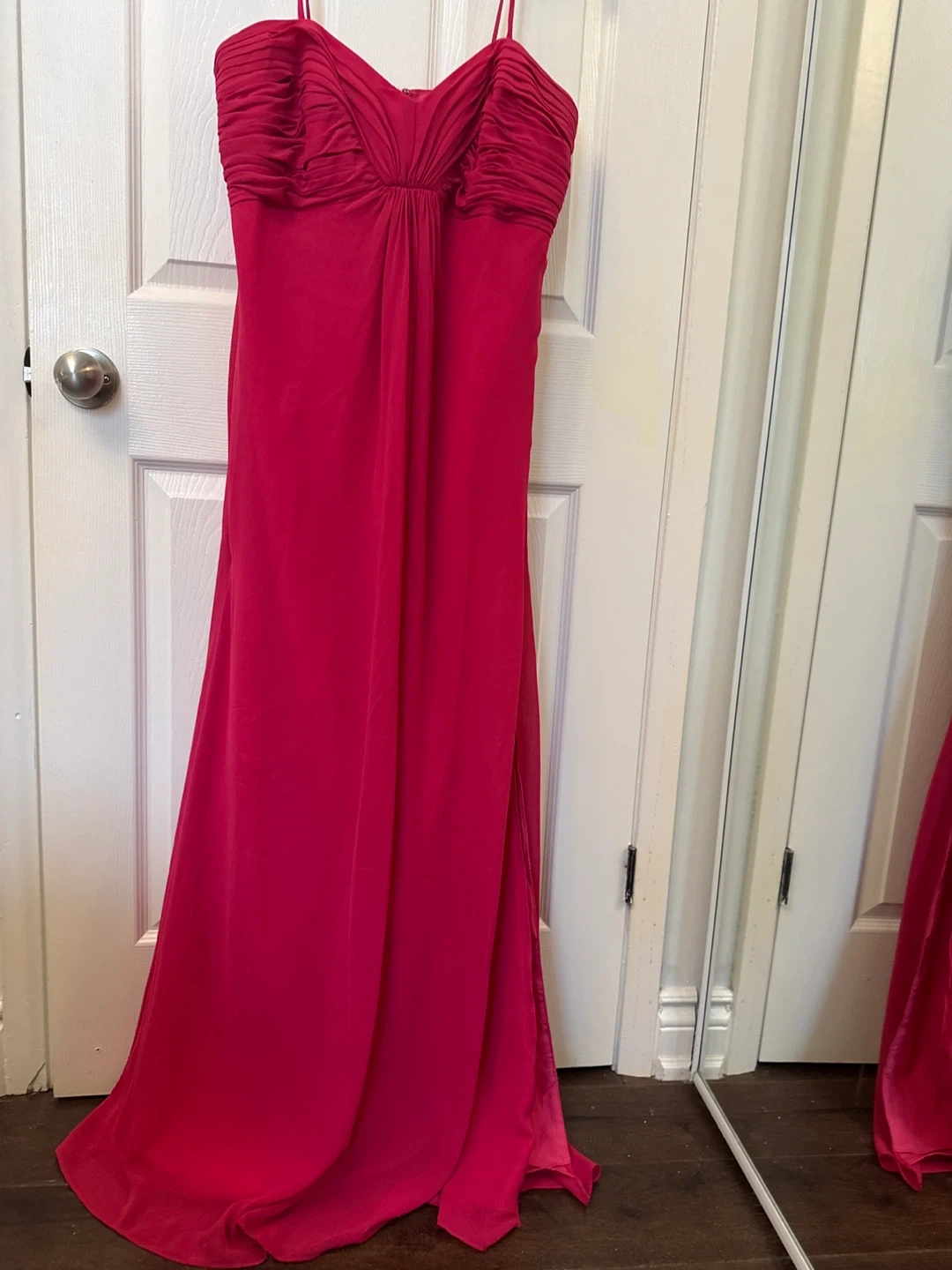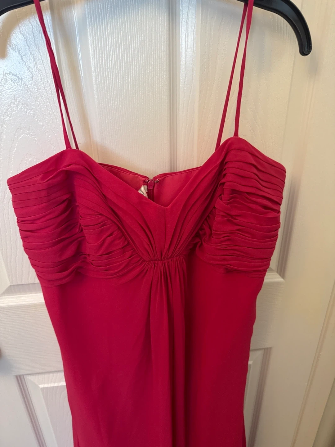 Selling a beautiful and flattering dress from David's Bridal! Spaghetti straps, flattering ruched bodice and knee length side slit. It was worn once for a wedding and is in great condition. Perfect for a special occasion!