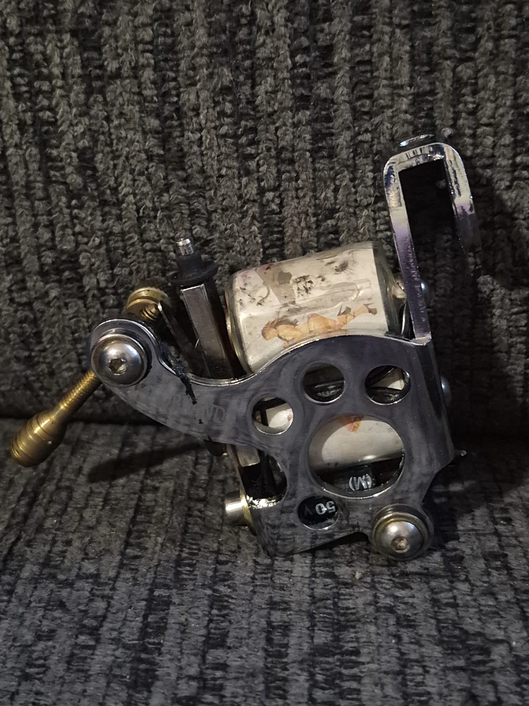 Selling a used tattoo machine. It shows light signs of wear, but it's still functional. Great for someone looking to practice or experiment with tattooing