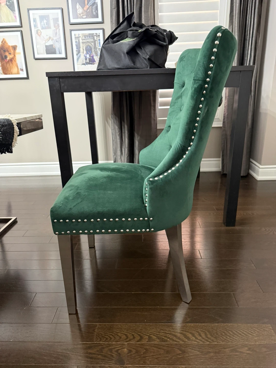 Set of 4 Grey Velvet Dining Chairs & 2 green accent chairs