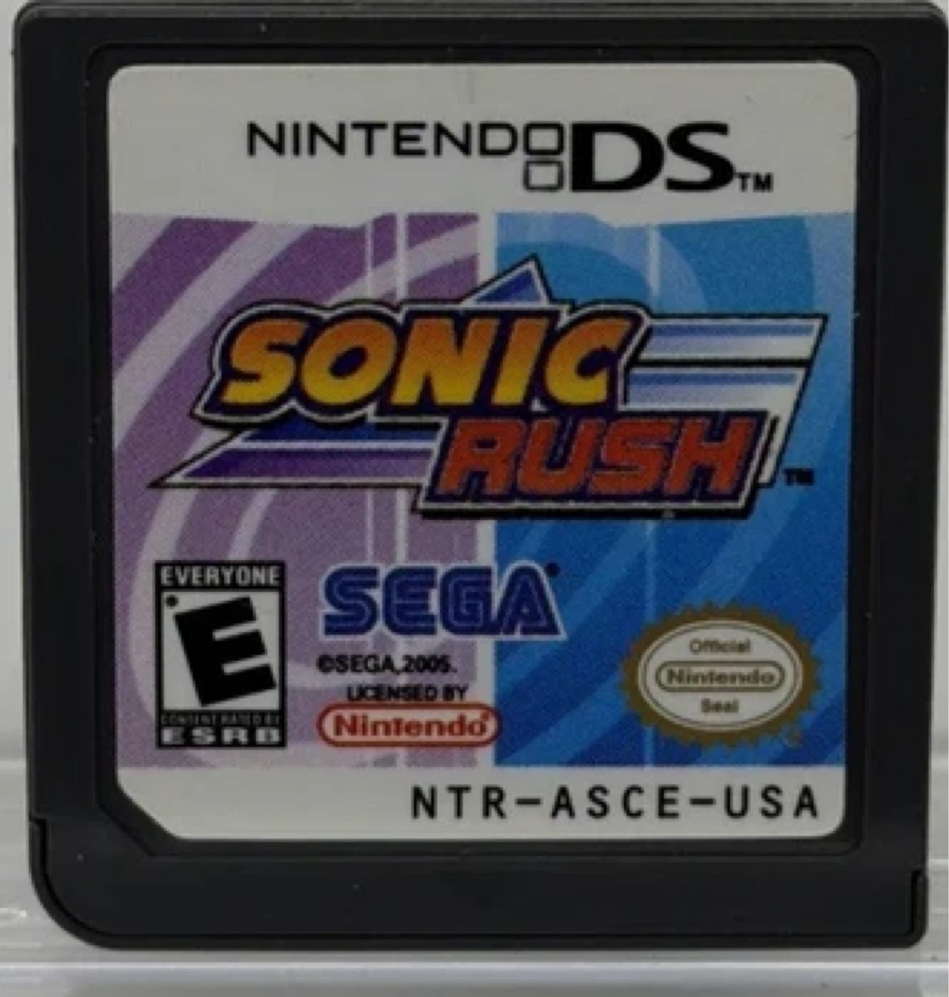 Selling a used copy of Sonic Rush for the Nintendo DS. Rated E for Everyone and licensed by Nintendo. Get ready to zoom through levels with Sonic!