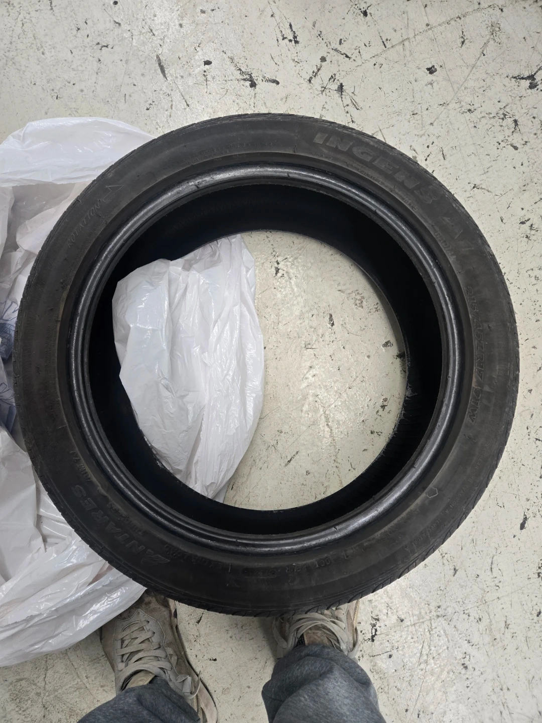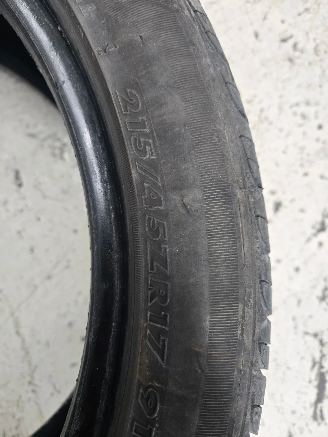 Pirelli P7 All Season Plus tire. Size 215/45ZR17 91W. This tire is in good condition with plenty of tread left. It's suitable for year-round driving in various weather conditions.