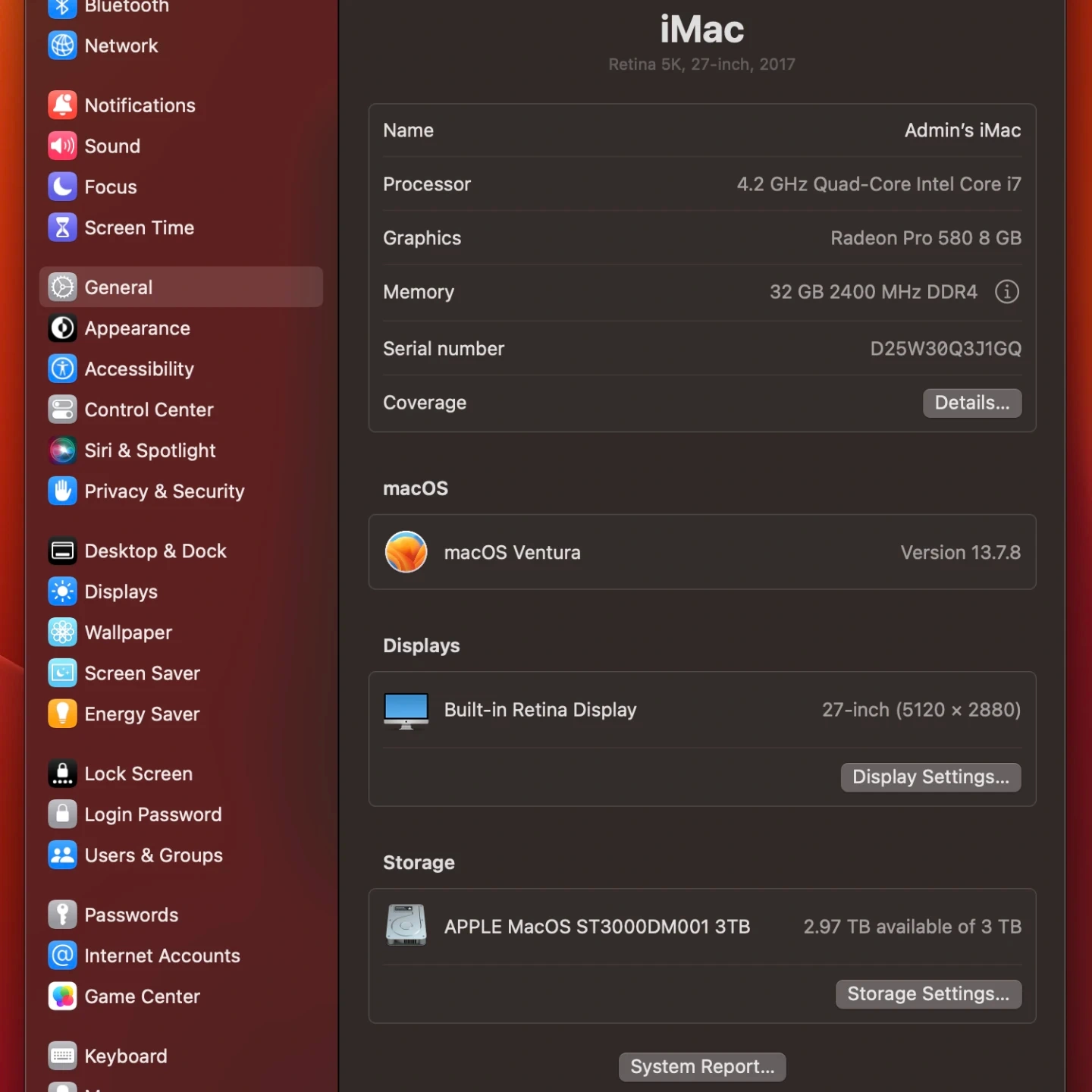 • Operating System: macOS Ventura 13.7.8