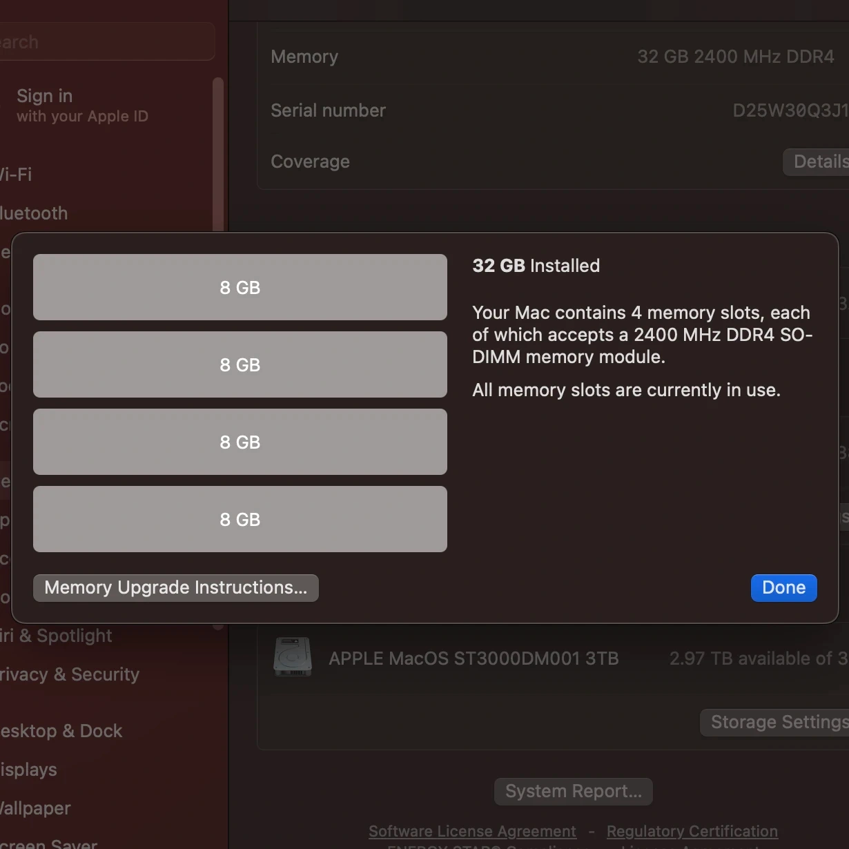 • Memory: 32 GB 2400 MHz DDR4