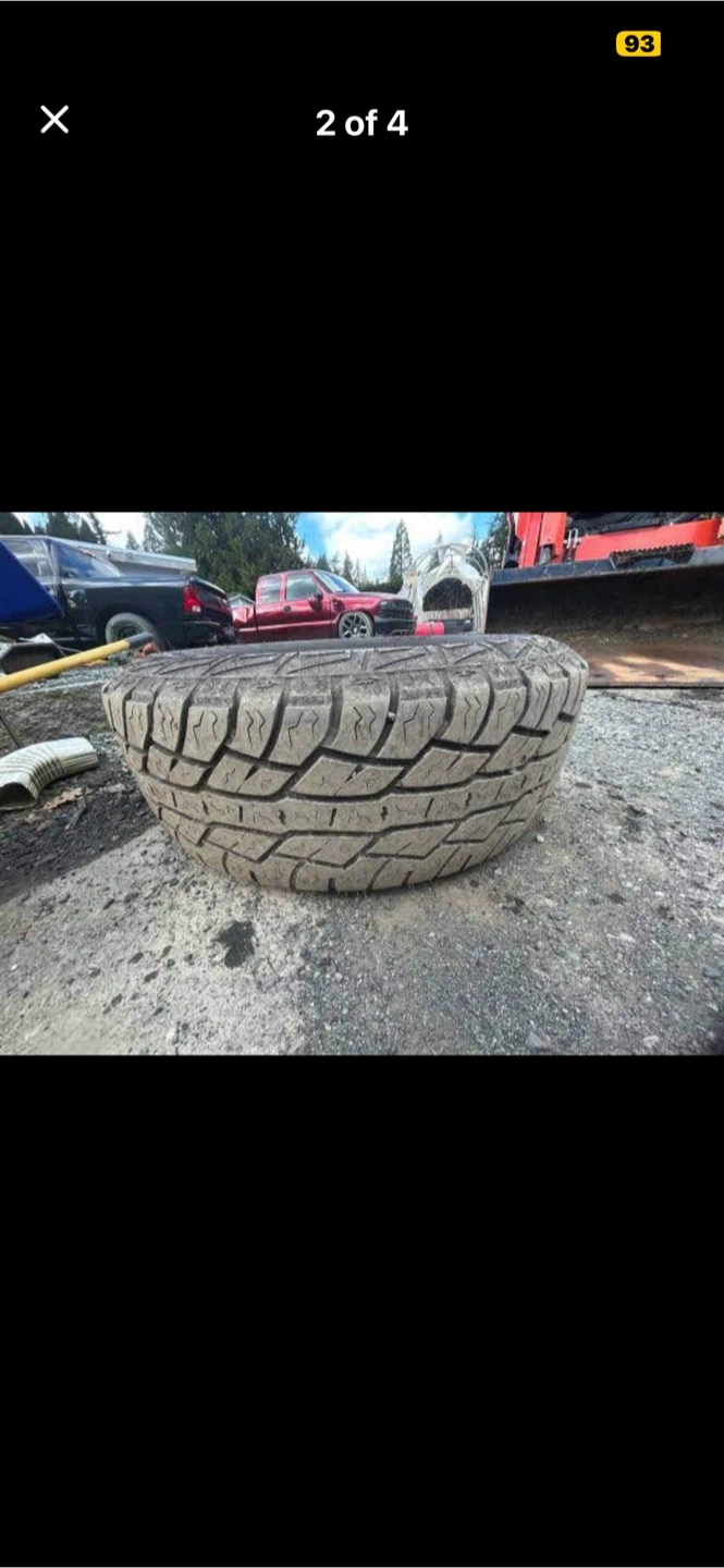 Brand new tires less than 100km put on them m/s with rims terramax lsr2 a/t Ilink LT285/65r18 125/122 10pt came off a Nissan pathfinder armada vehicle blew up the truck and took tires off paid 1300 for the set of 4.