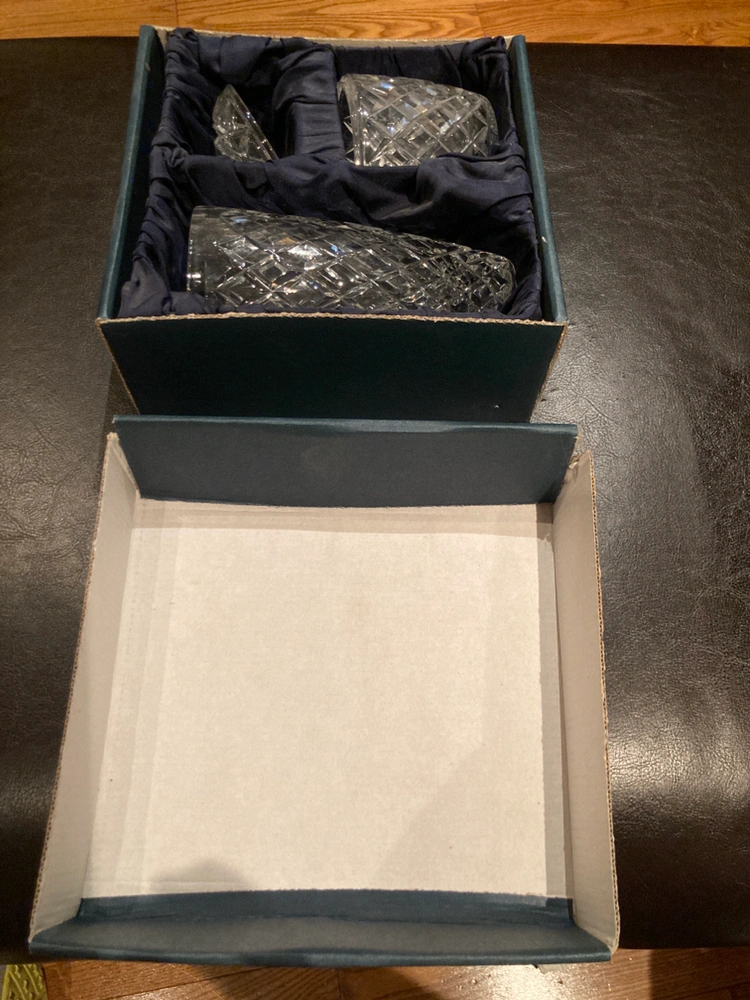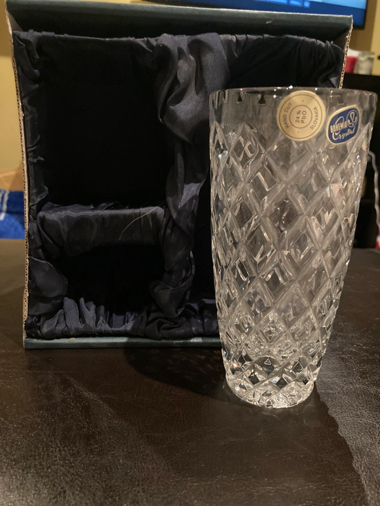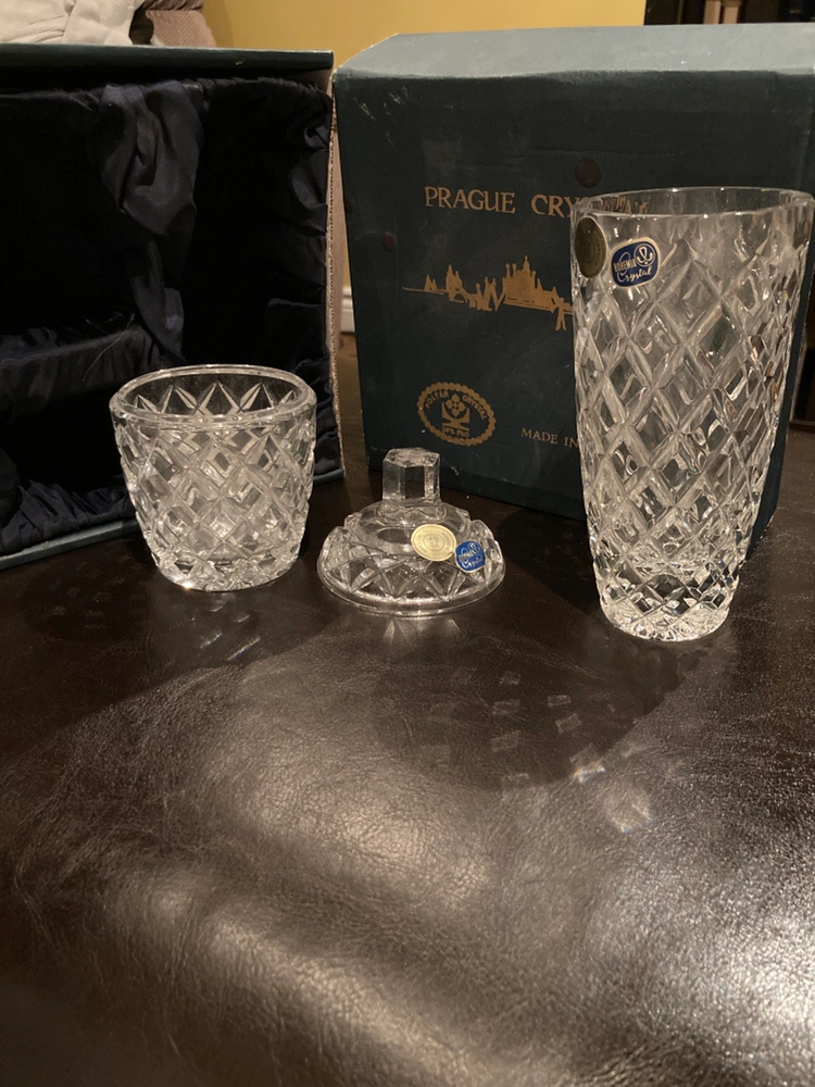 This honey pot & vase set, has been on display in my living room for quite some time because I was brought up to display things of importance! The box is slightly damage (so cannot be regifted) however the crystal has never been used.