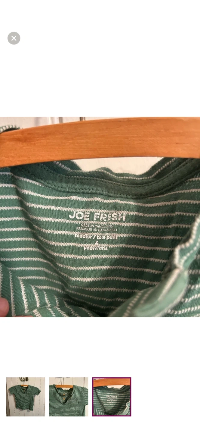 Joe fresh brand. Short sleeve T-shirt. Green & white striped. Size toddler 4. Brand new condition