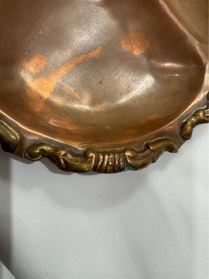 Beautiful copper divided serving dish. Has not been cleaned, this is natural patina. Has good weight to it. 14" x 10". #440/800. Cash Only - Richmond Hill - Bathurst & King Rd.