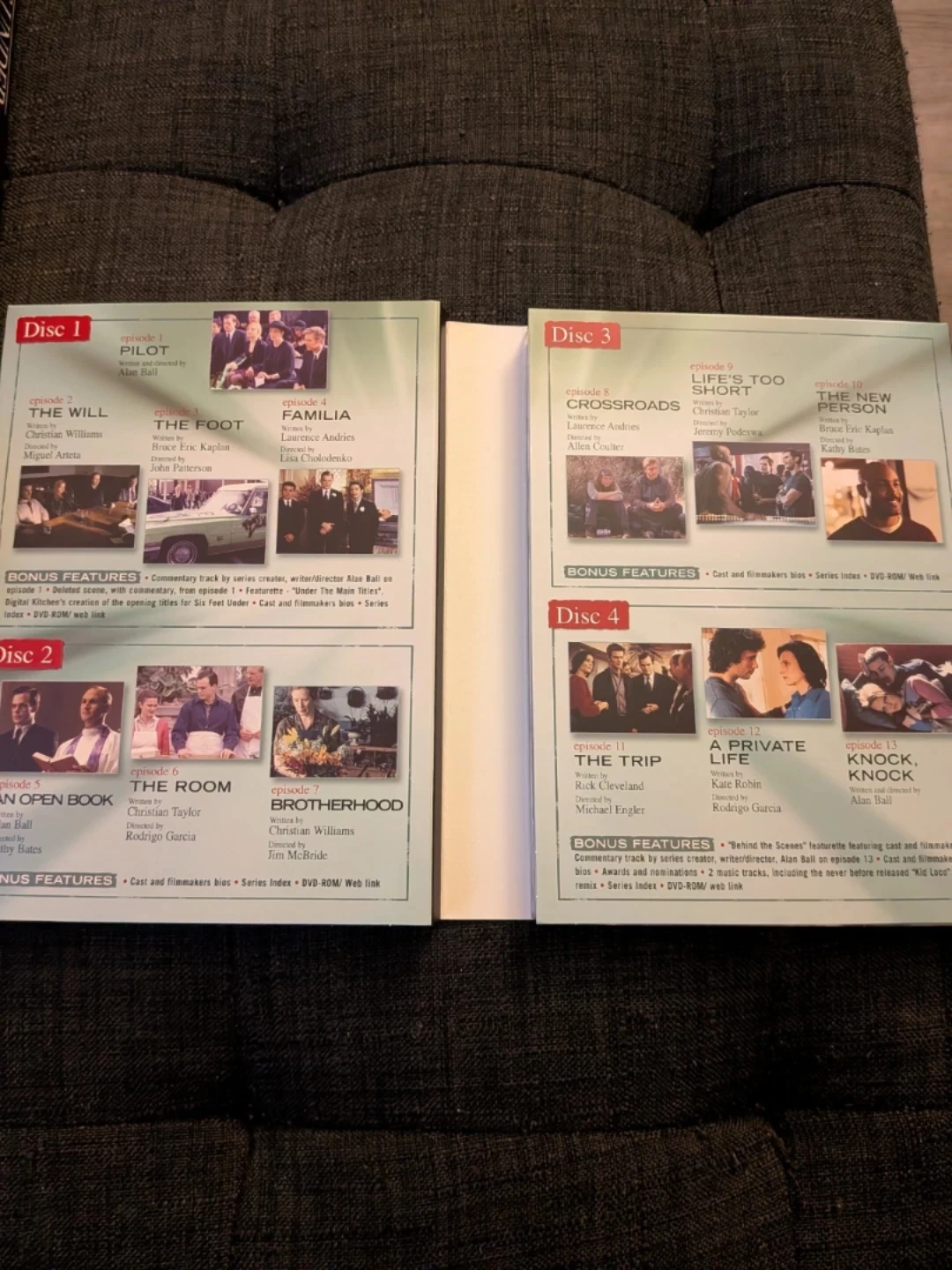 This DVD set includes Six Feet Under: The Complete First Season. It features 13 episodes across 4 discs. Bonus features like behind-the-scenes footage, deleted scenes, and audio commentaries are included.