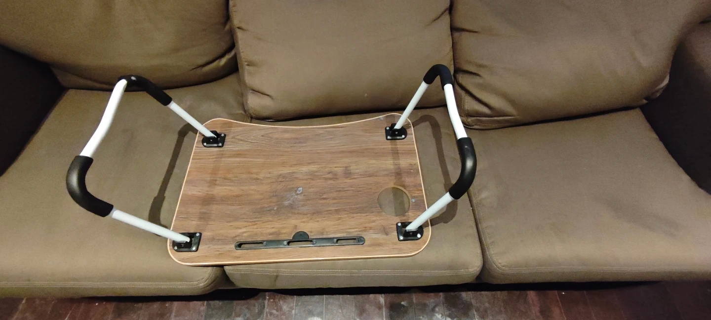 Selling a foldable laptop bed desk. It's super handy for working or relaxing in bed or on the couch. It features a cup holder and a slot for your tablet or phone. The legs fold easily for storage, making it lightweight and portable