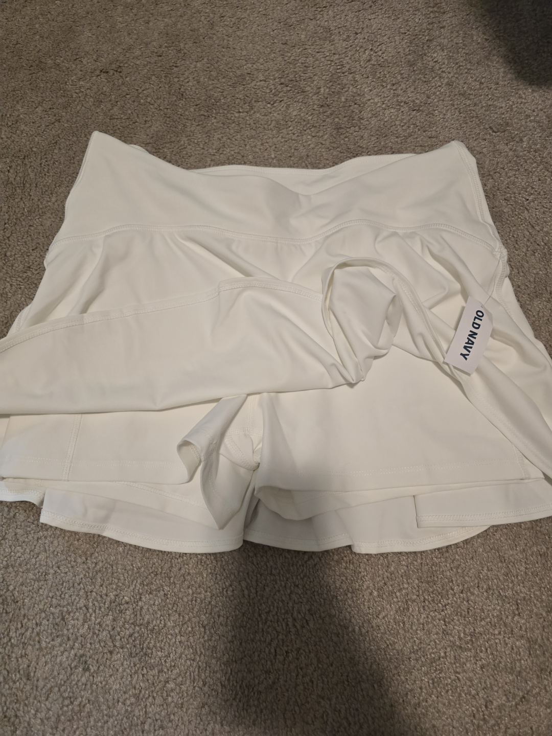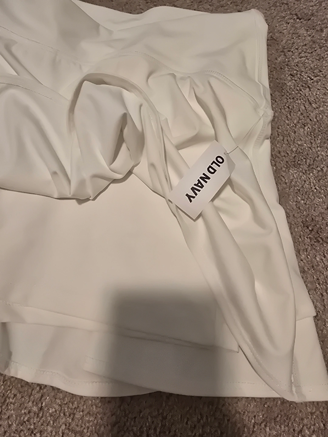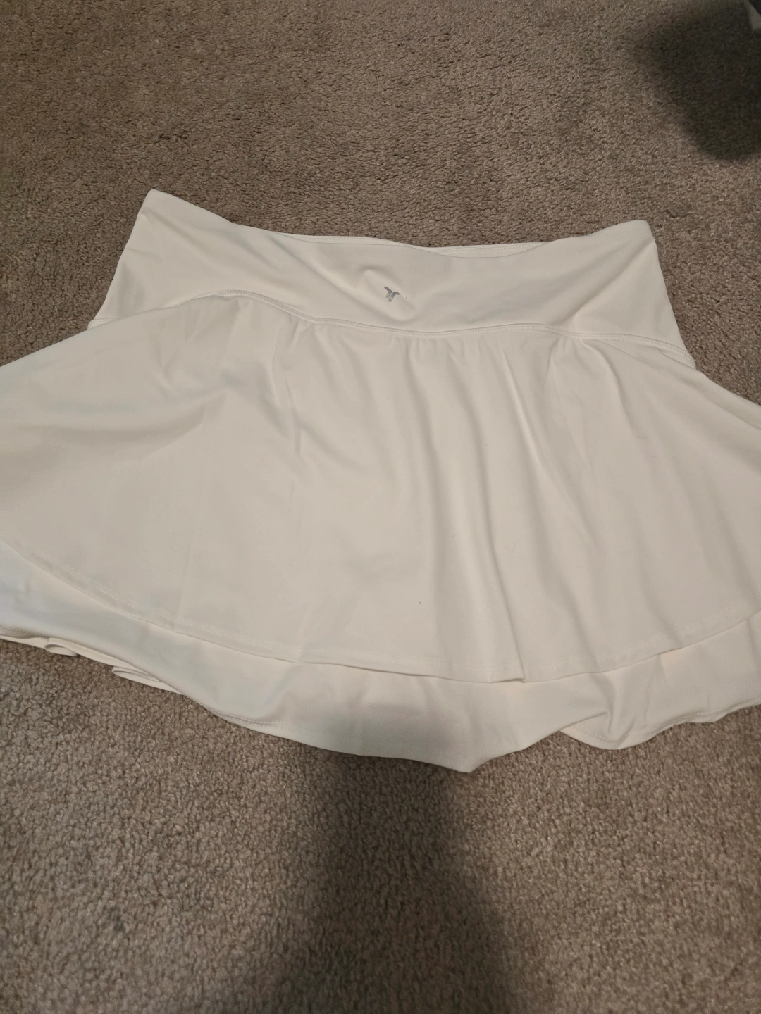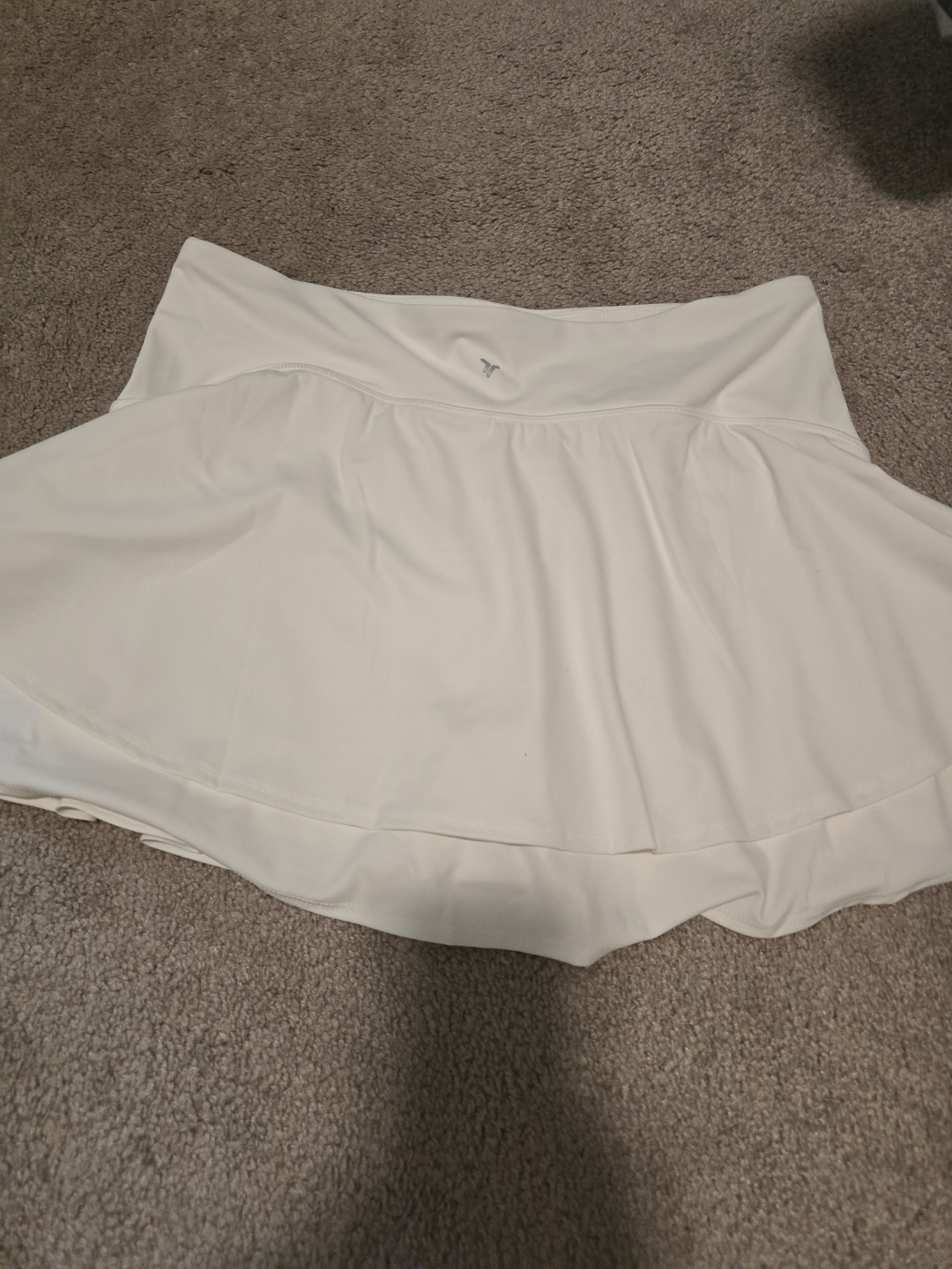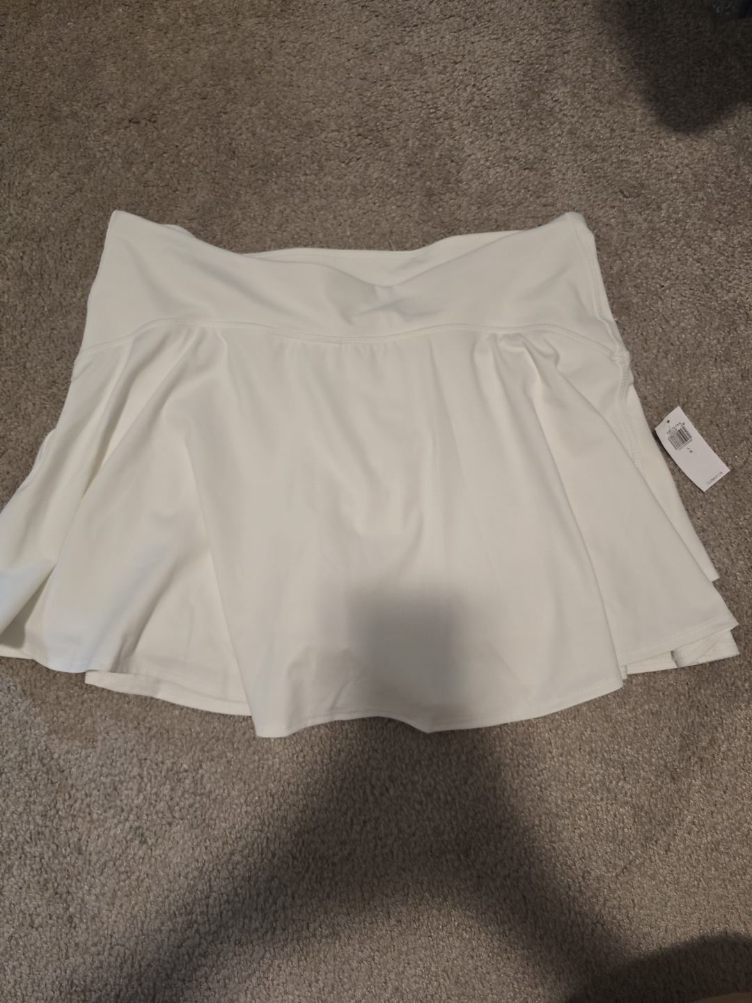 Women's white tennis skort. Layered design. Suitable for athletic activities. Brand new with tags.