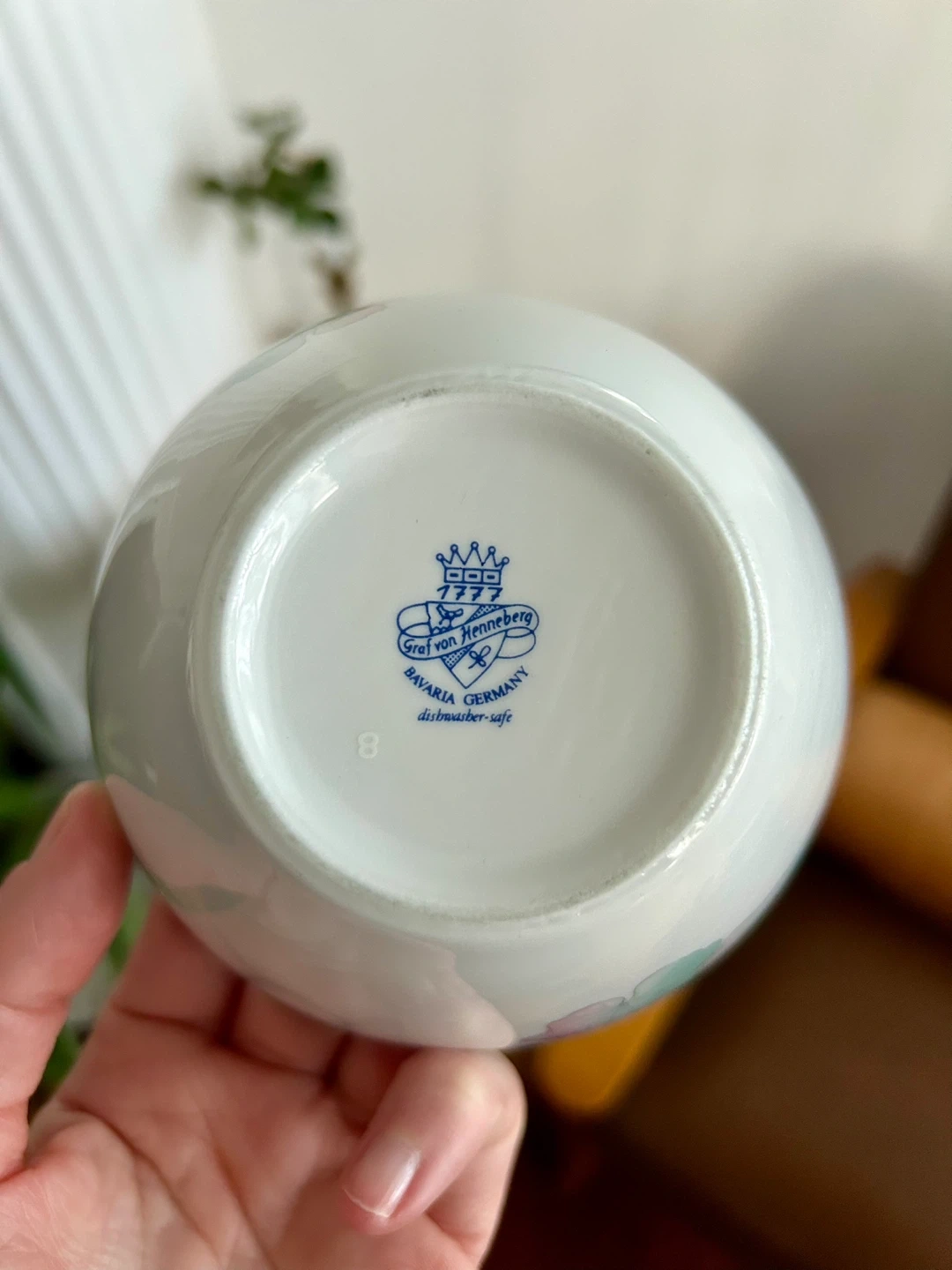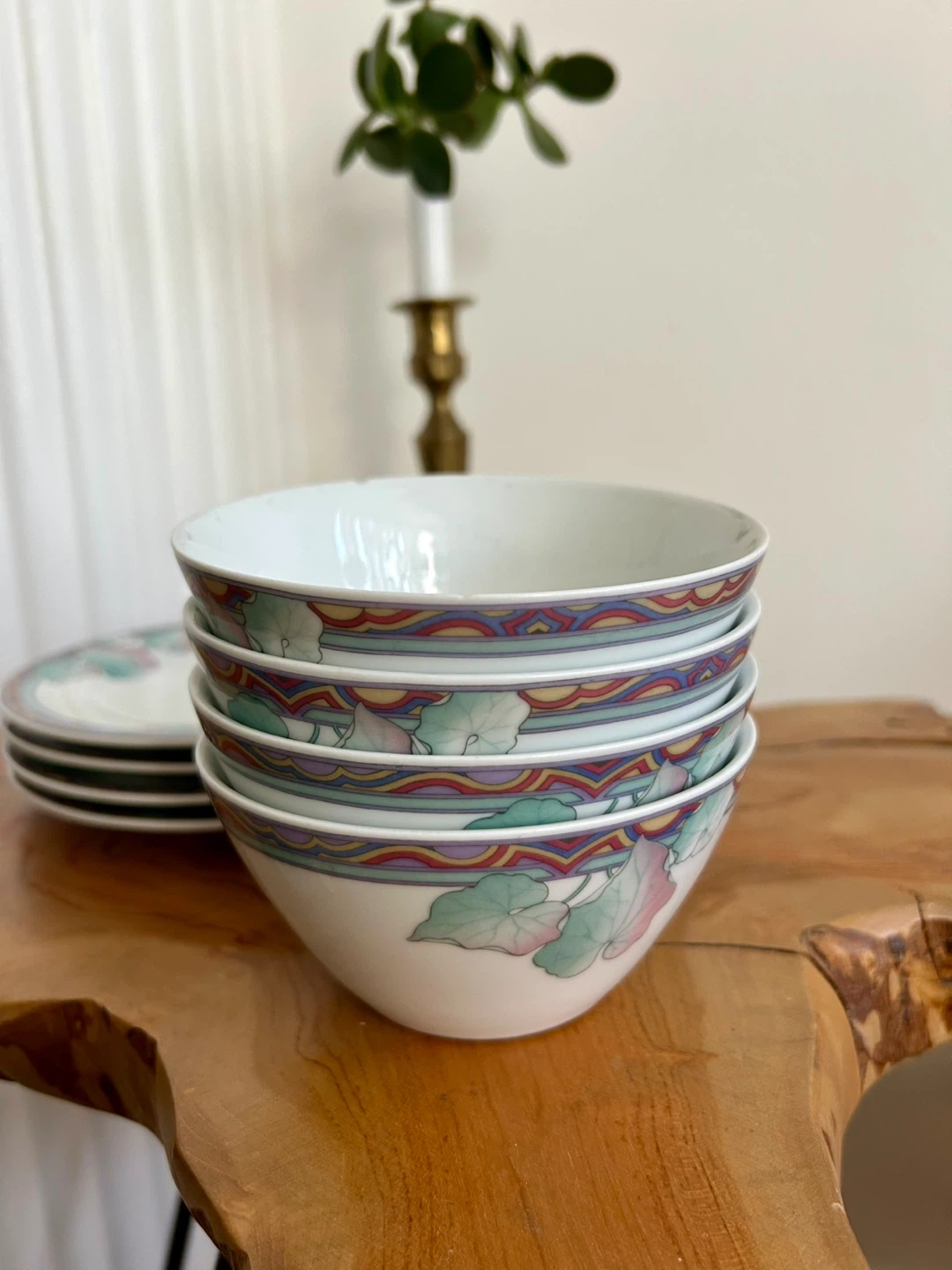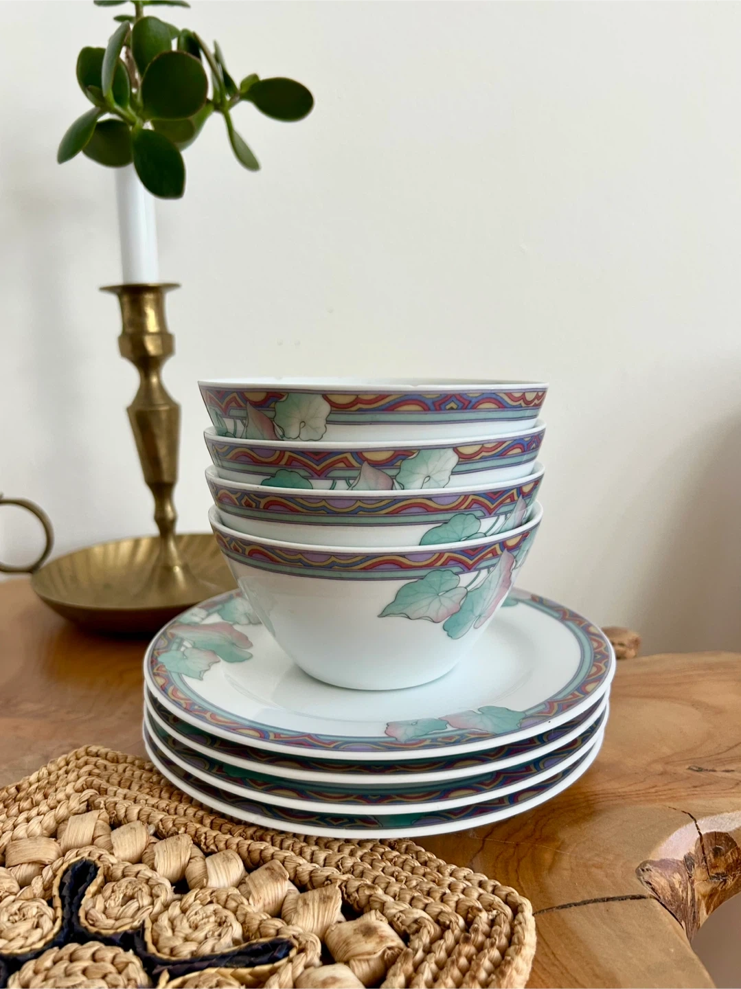 Precious vintage Graf von Henneberg ceramic set, made in Germany. Featuring a fun retro colourway with pastel foliage design, est. early 1990s.