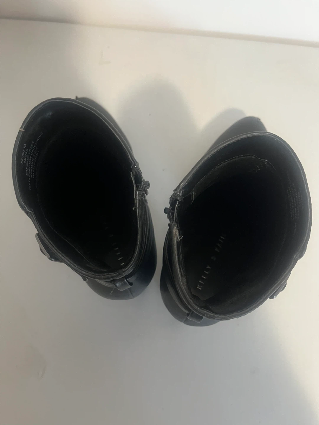Black ankle boots by Kelly & Katie. They feature a side zipper and decorative buckle strap. These boots have a block heel and faux leather upper. Perfect for dressing up any outfit!