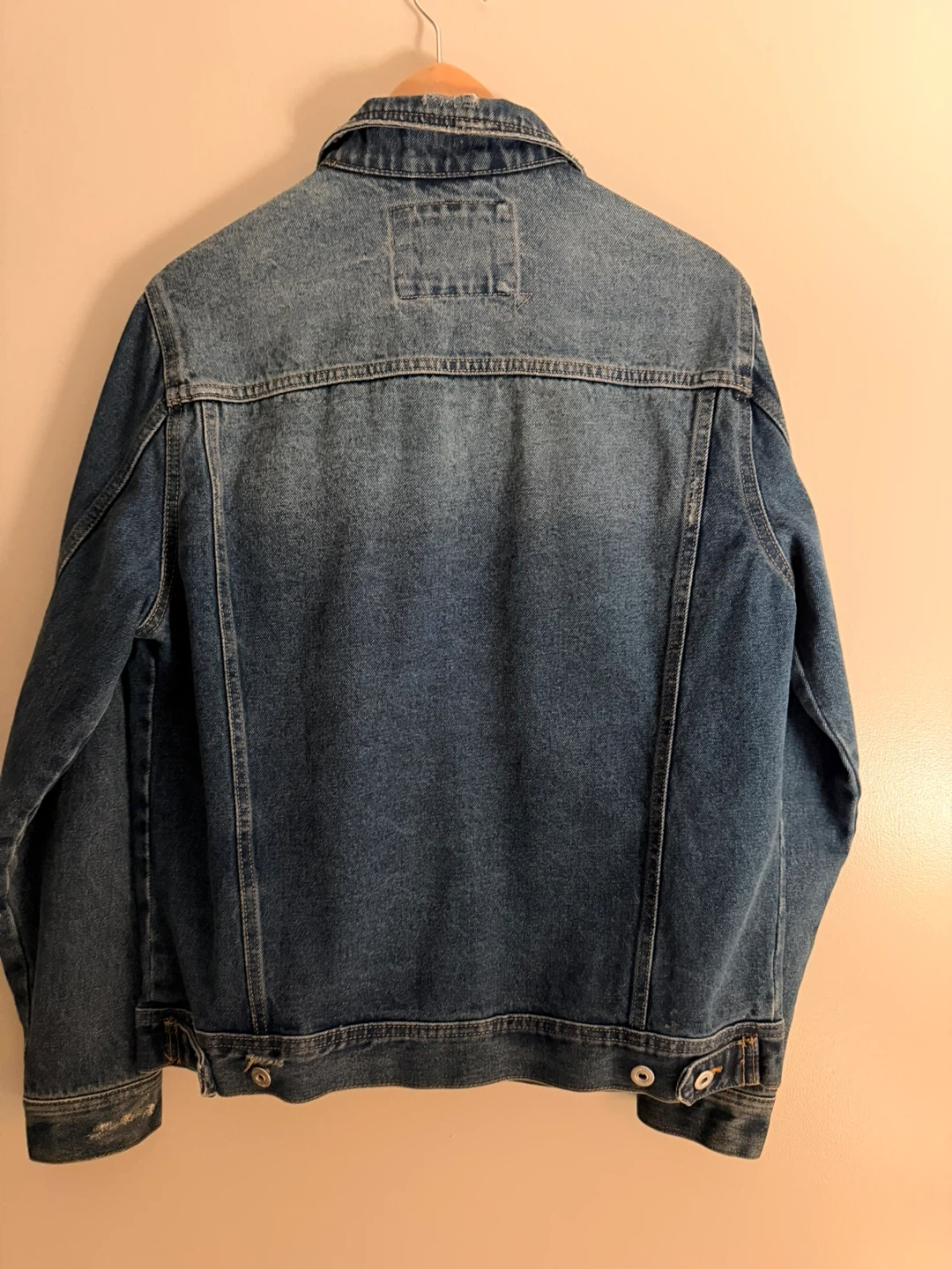 It has a button-up front and two chest pockets. A durable staple for any wardrobe!