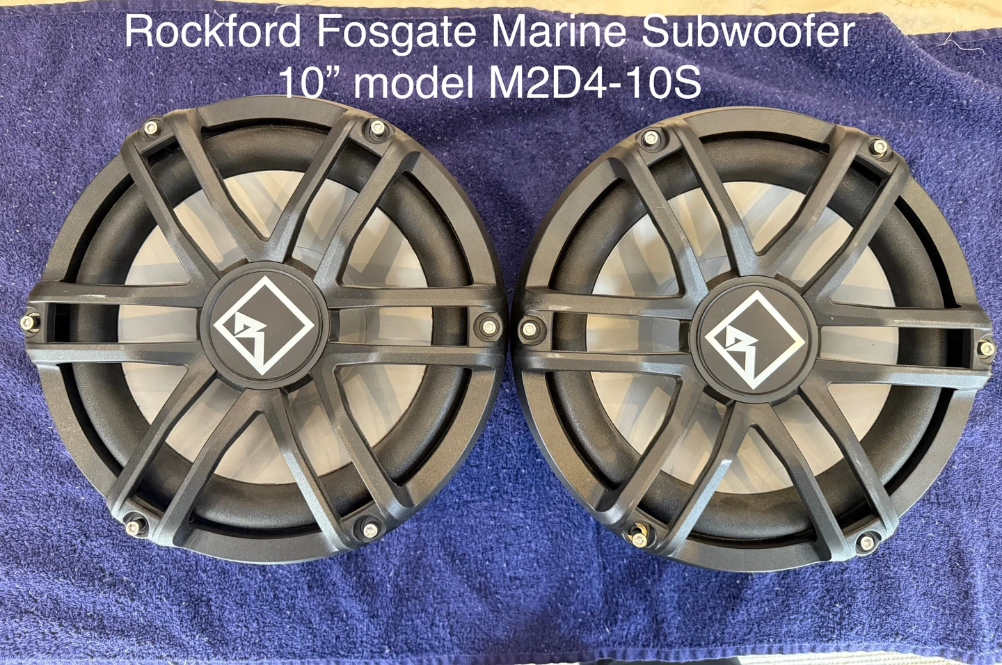 Selling a pair of Rockford Fosgate M2D4-10S 10-inch marine subwoofers. These are designed for marine environments. They're 4-ohm voice coil speakers.