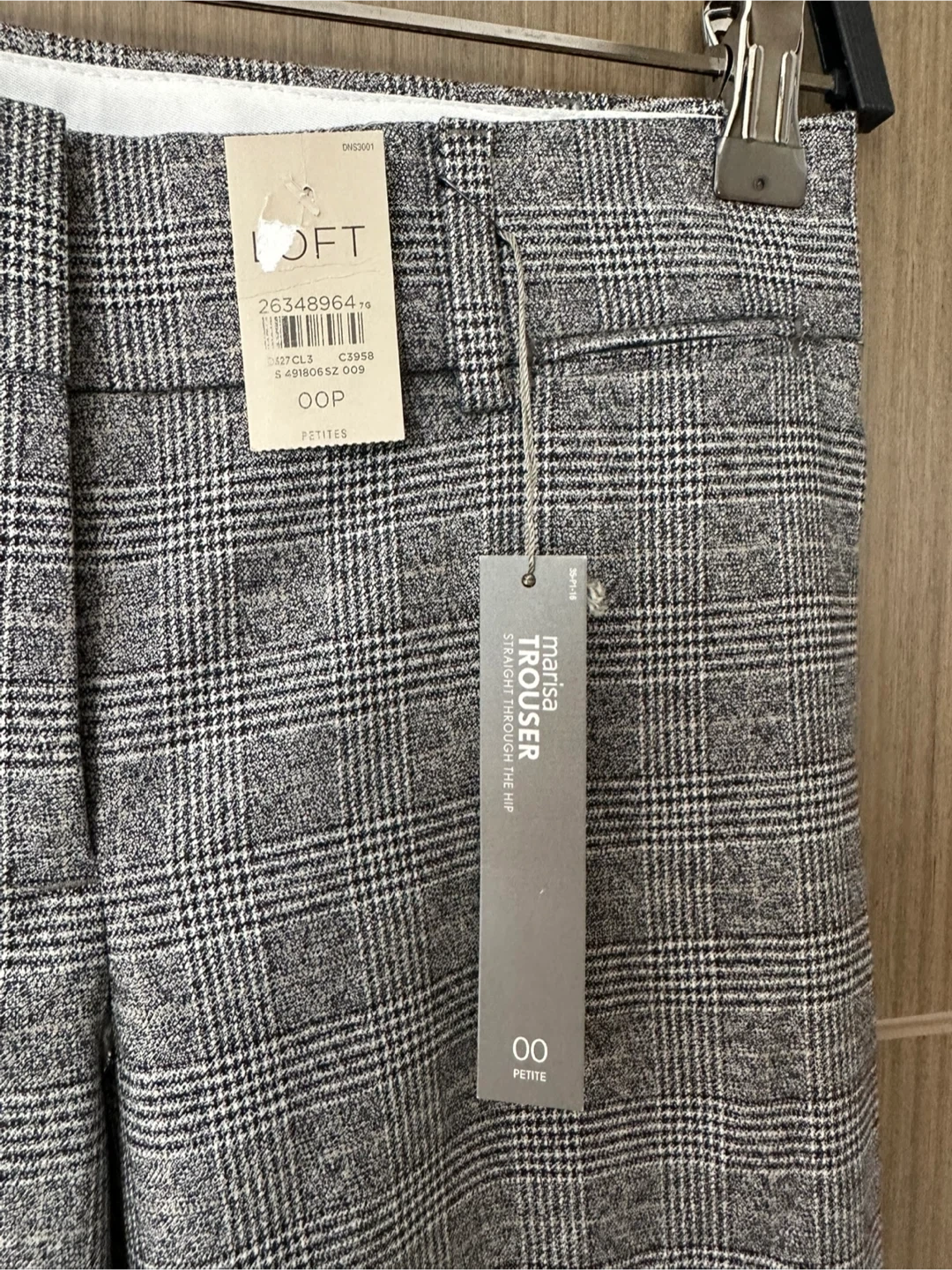 Selling a pair of LOFT Marisa trousers in size 00 petite. These are straight through the hip and feature a stylish plaid pattern. They are in great condition and ready for a new owner!