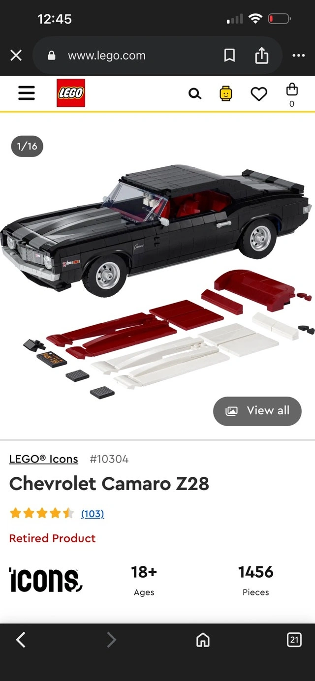 Buy & SellNEW IN BOX CAMARO Z28 UNOPENEDNEW IN BOX CAMARO Z28 UNOPENED$260Selling brand new, never opened Lego Camaro Z28. 1456 pieces. Price: $260.WHERE TO MEETCheck LocationView MapSELLERKevinAmberlea50 reviews0 chats·0 favorites·0 viewsSEND CHAT TO SELLERHi Kevin! I’m interested in your listing.Hi Kevin! I’m interested in your listing.Get the Karrot app to chatSign In to chat