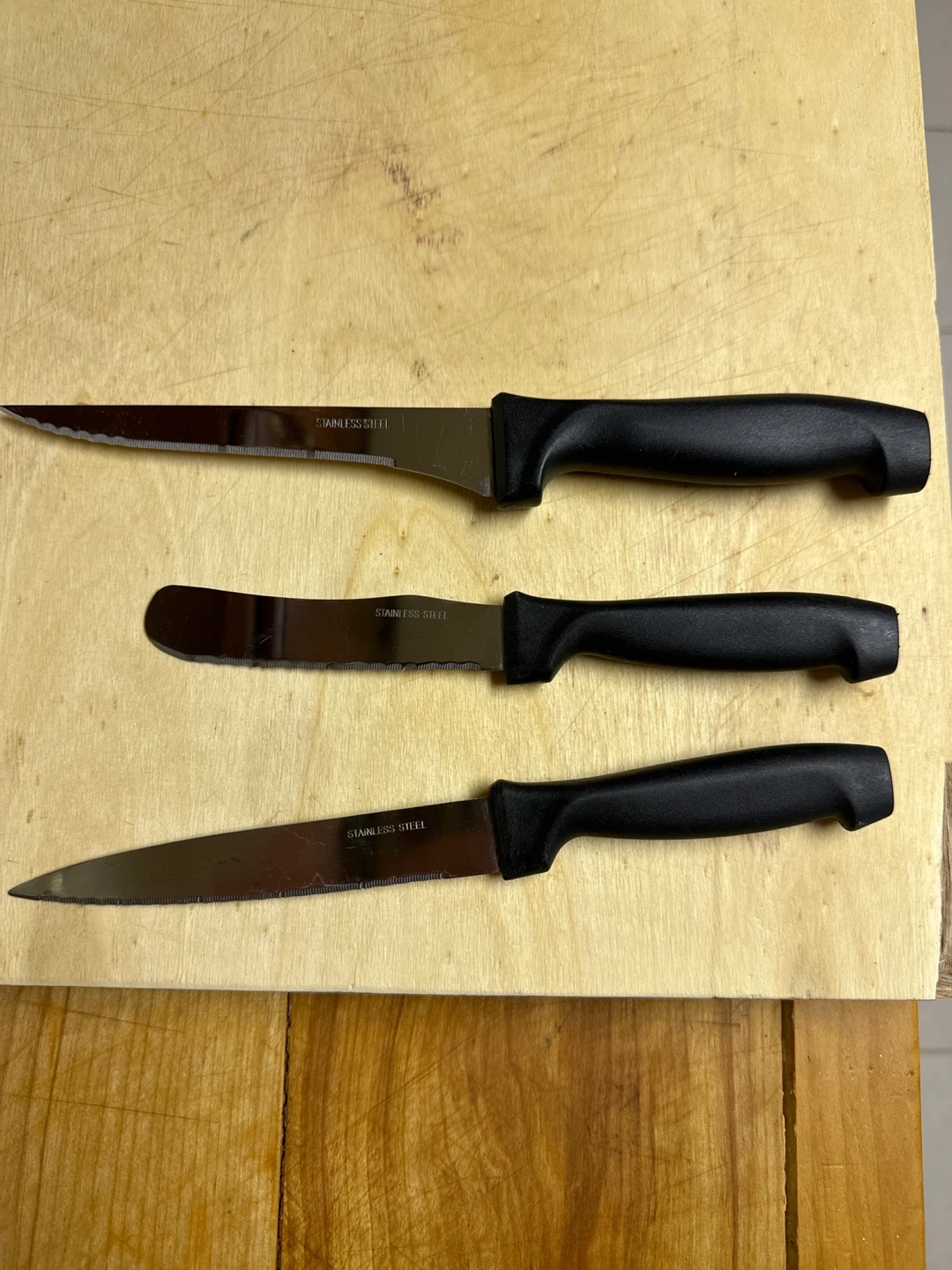 Buy & Sell3 Stainless Steel Knives3 Stainless Steel Knives$303 different types of Knives like new $10 each or best offerConditionLike newWHERE TO MEETCheck LocationView MapSELLERAlexBorden Farm - Stewart Farm - Parkwood Hills - Fisher Glen342 reviews0 chats·0 favorites·3 viewsSEND CHAT TO SELLERHi Alex! I’m interested in your listing.Hi Alex! I’m interested in your listing.Get the Karrot app to chatSign In to chat