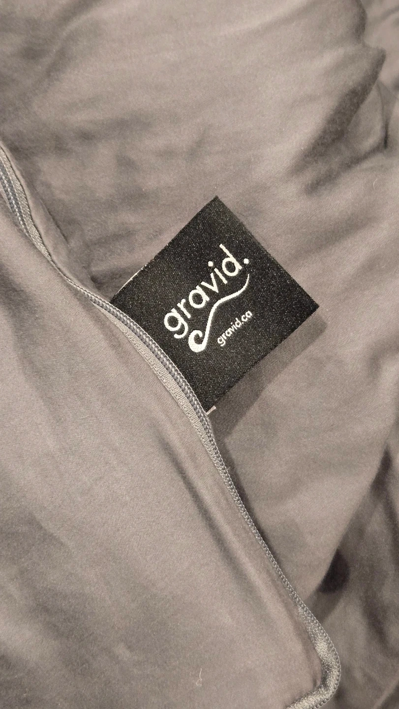 Gravid duvet cover in a dark grey colour. Zipper closure. Soft fabric. Cooling eco breeze cover. Used like new no stains rips or tears. Non smoking home.