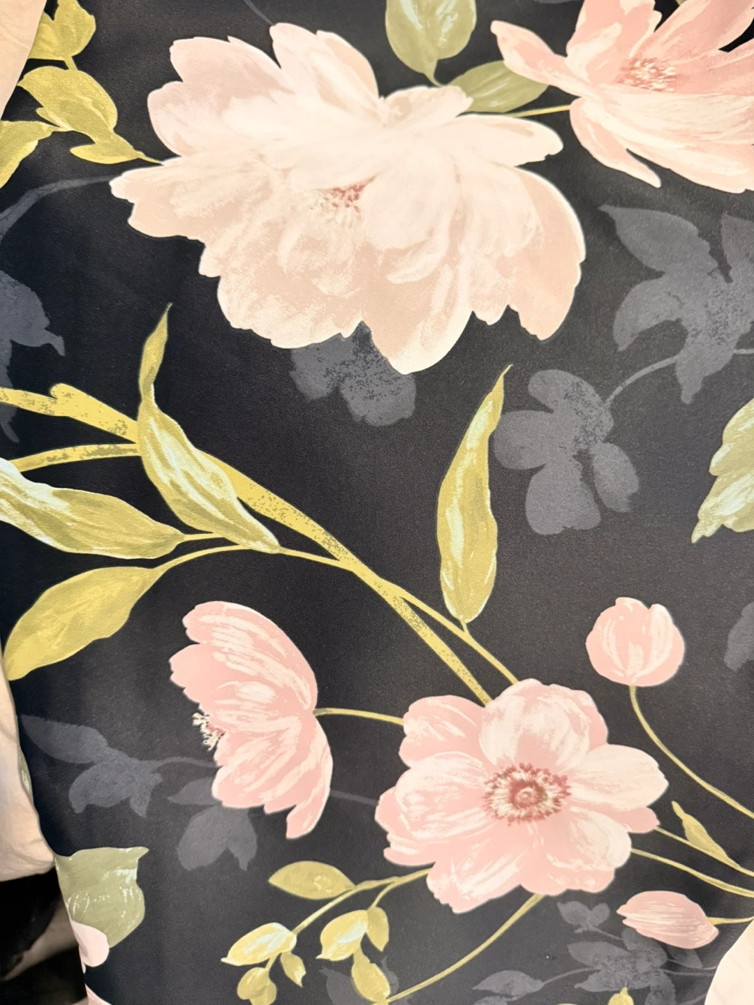 Blackout curtains with a beautiful floral print on a black background. They're made from polyester fabric. Adds a touch of elegance to any room!