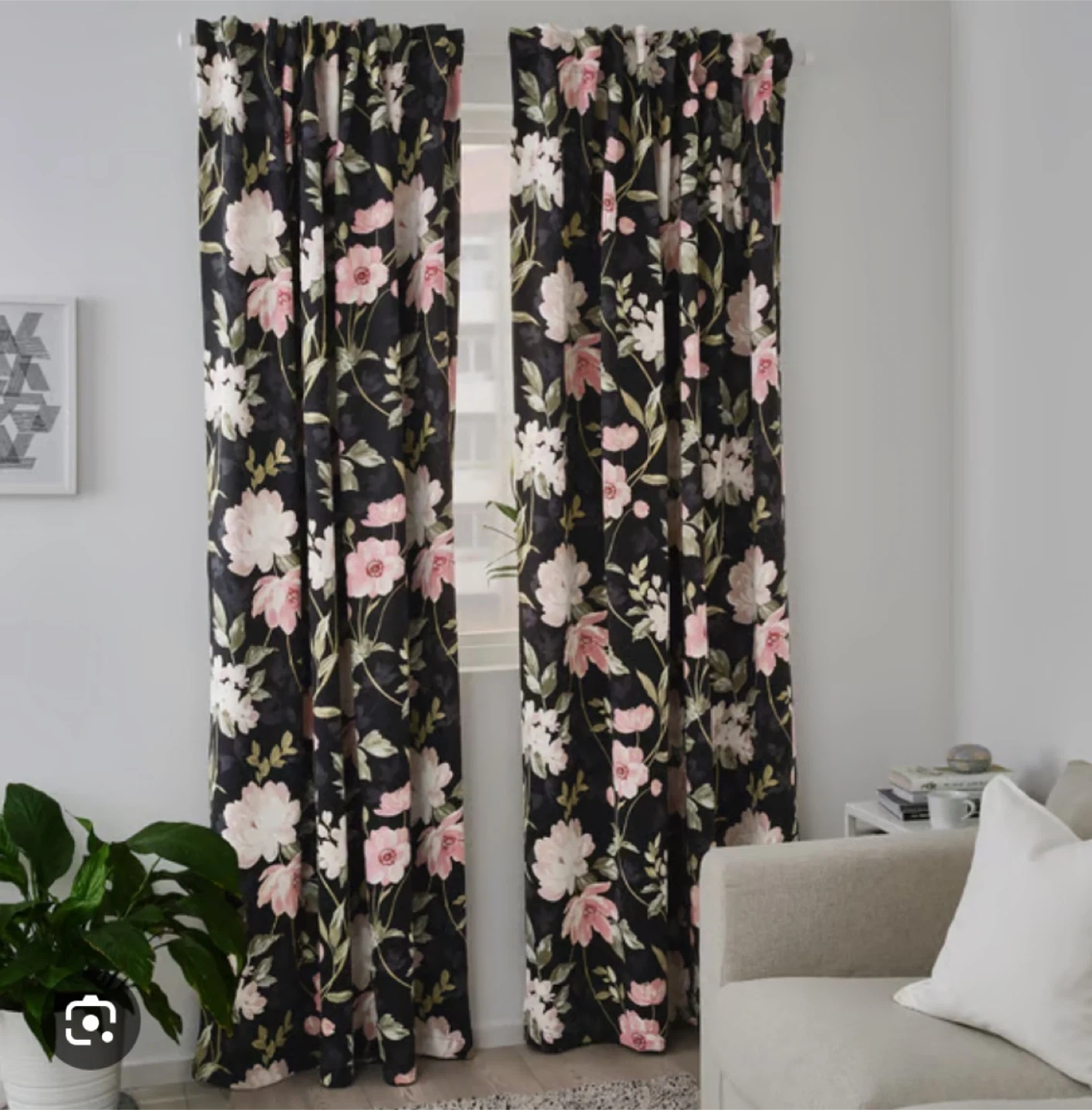 IKEA Black Floral Print Curtains - 2 Pairs