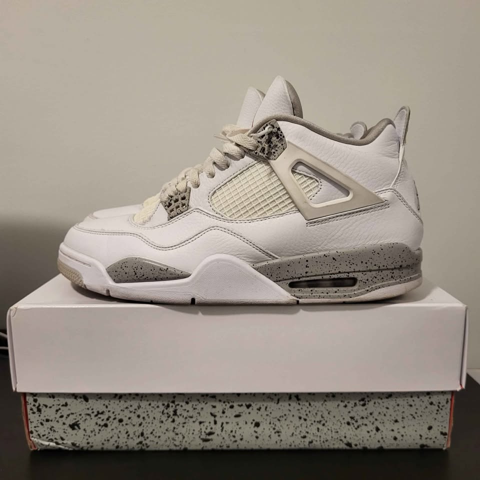 Air Jordan 4 Retro "White Oreo" Size 13 Used, like new. Brand Model: Nike Air Jordan 4. Size: Men's US Size 13. Condition: Used, good condition. Color: White Oreo. Includes Original box. Price: $220 CAD. Cash only. Meetup at the Planet Fitness Plaza in Pickering (2460 Brock Rd, Pickering, ON L1X 2R2). No delivery unless paying an E-transfer deposit before-hand