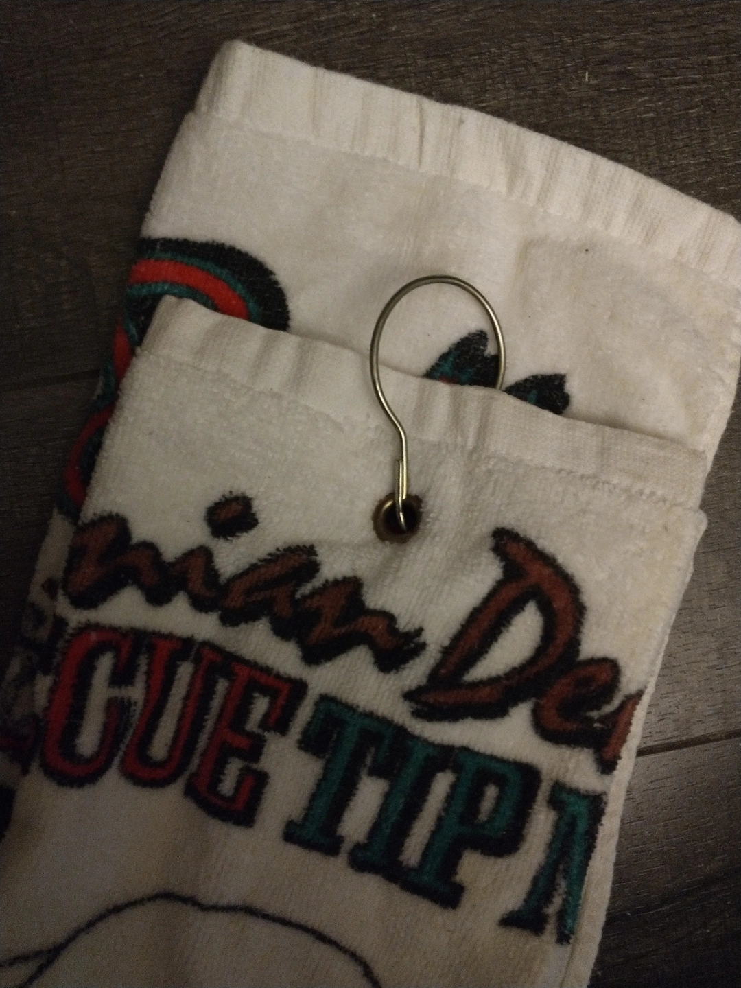 THIS TOWEL ATTACHES TO YOUR BARBECUE SO YOU HAVE SOMETHING HANDY TO WIPE YOUR HANDS ON WHEN THEY GET DIRTY. NEW, NEVER USED, THIS HAS BEEN IN STORAGE FOR YEARS.