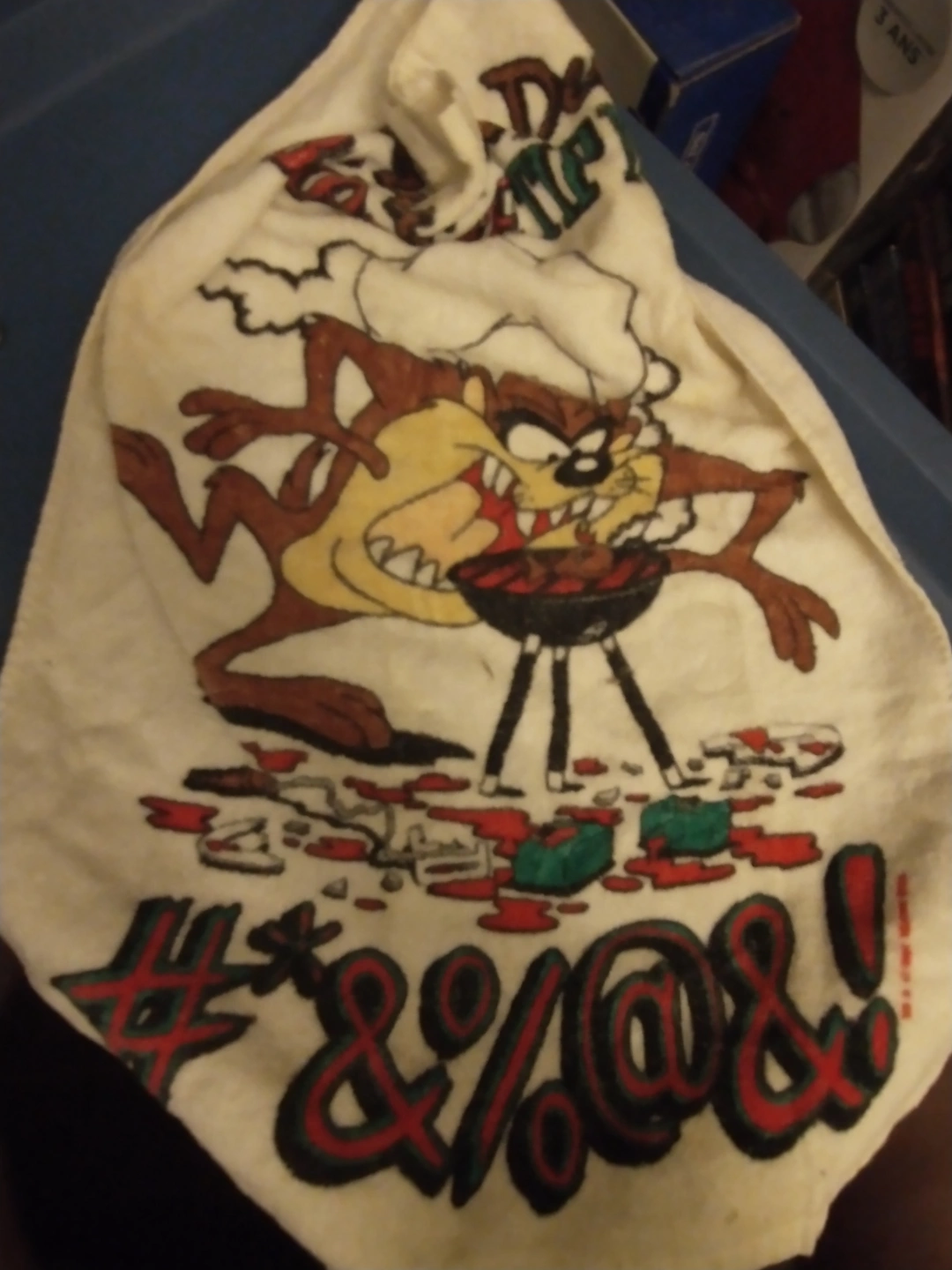 NEW!! 1990'S VINTAGE LOONEY TUNES / WARNER BROS. TASMANIAN DEVIL BBQ TOWEL.