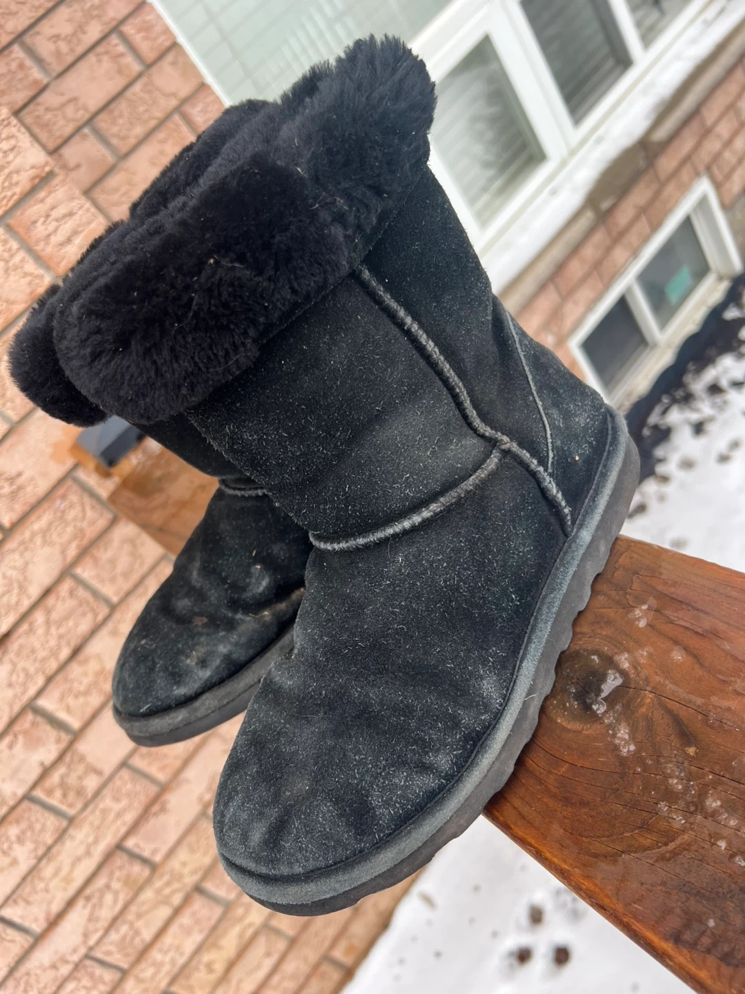 Bearpaw Black Suede Fur Lined Boots size 8