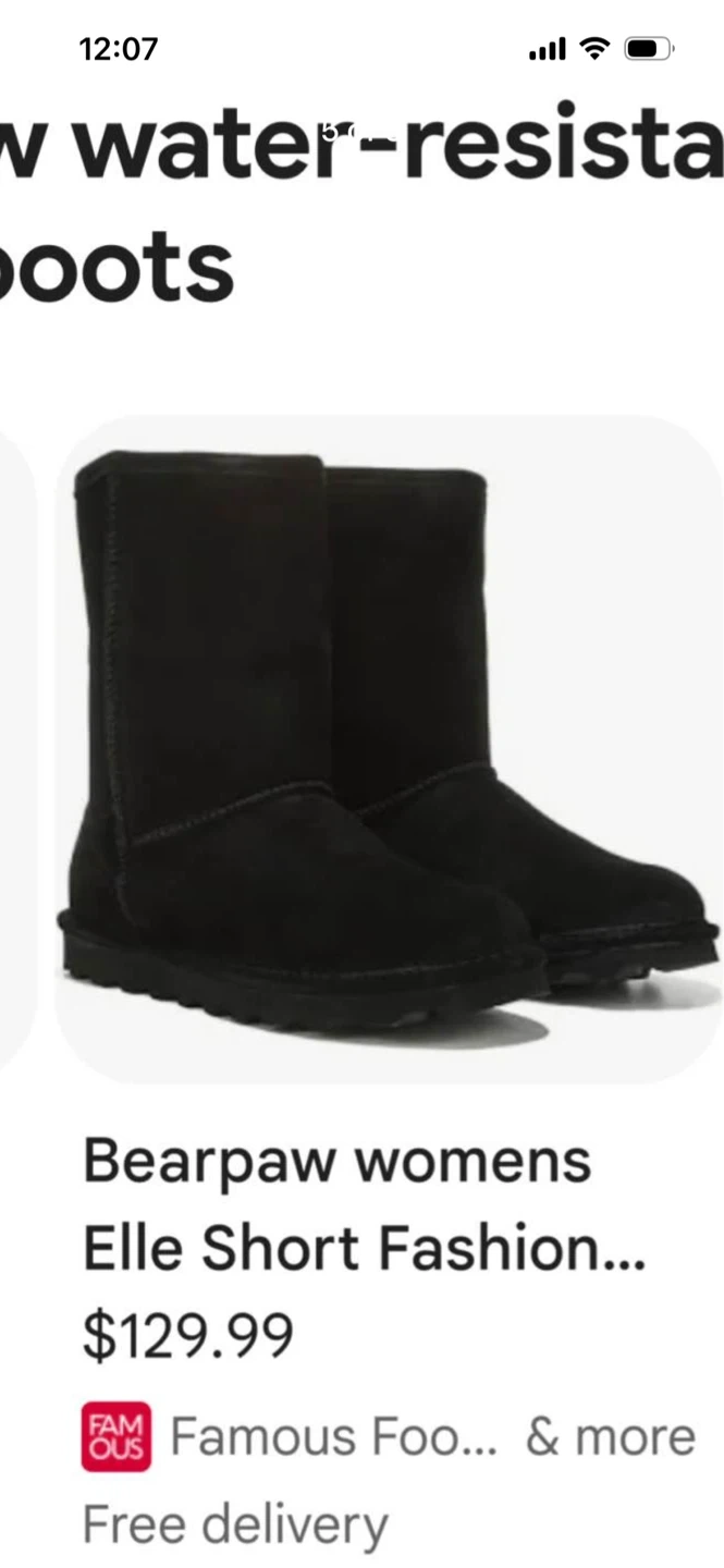 Bearpaw women's short fashion boots. These black suede boots have a cozy fur lining. They're great for keeping your feet warm on chilly days!
