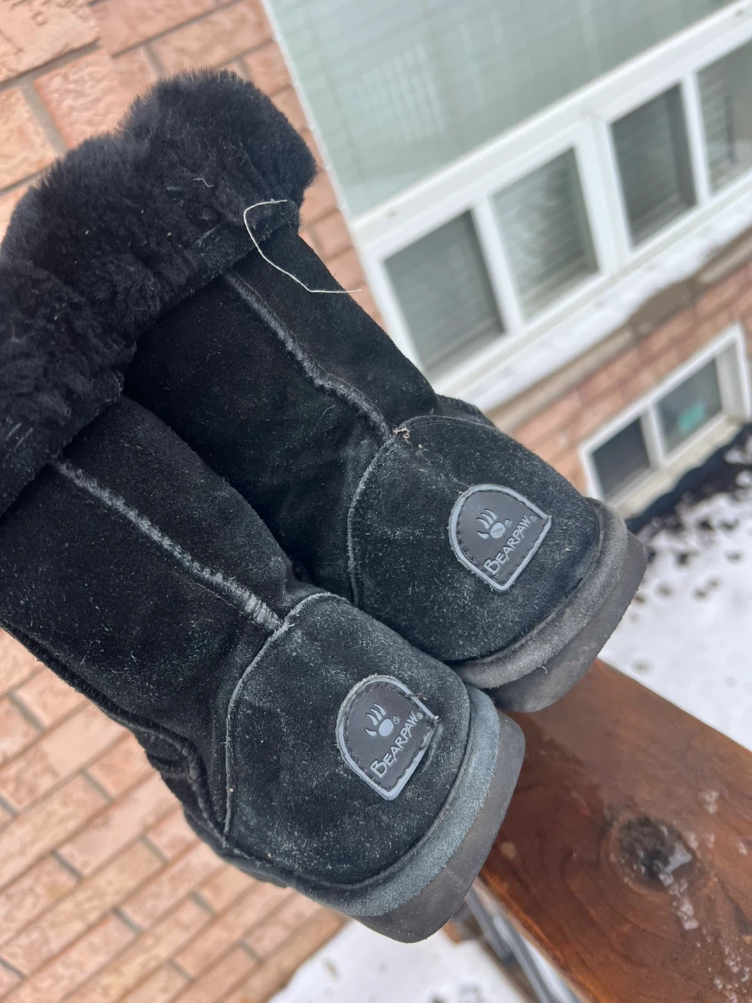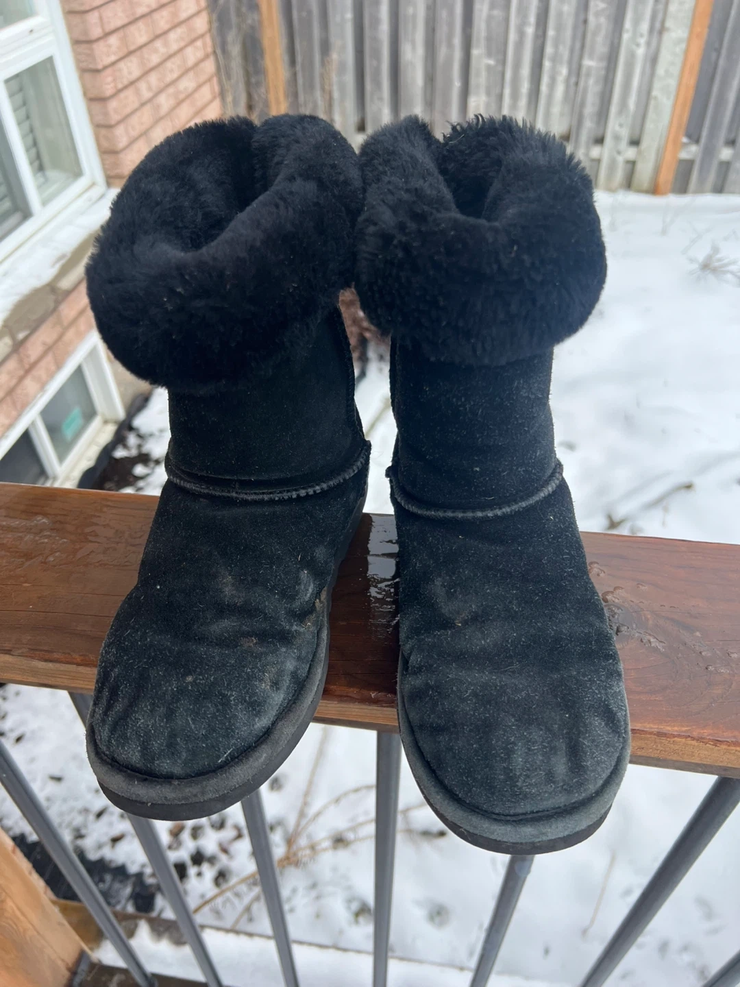 Bearpaw Black Suede Fur Lined Boots size 8