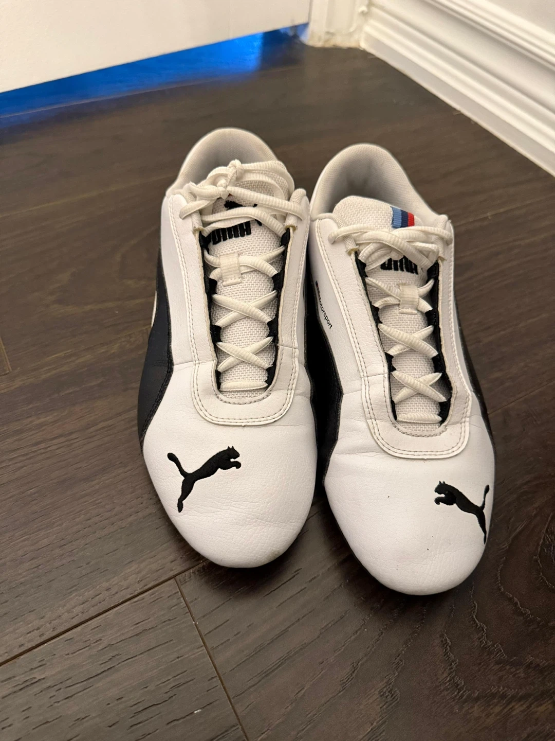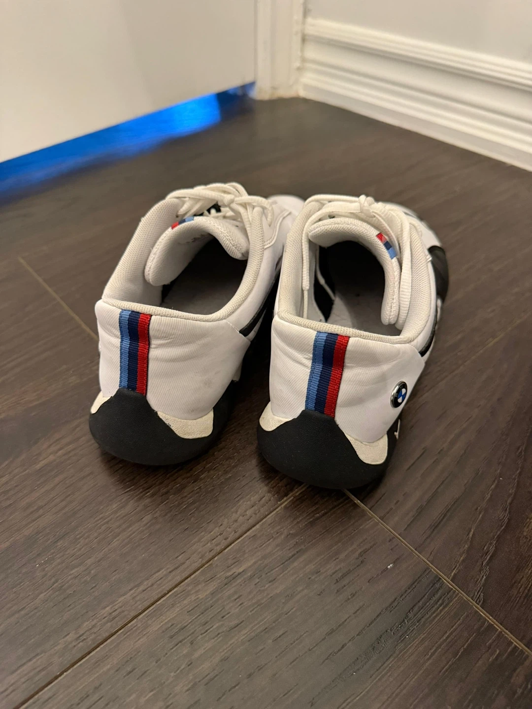 These Puma BMW M Motorsport shoes are white with black accents and lace-up closure. Features the iconic Puma cat logo and BMW M Motorsport branding. Men's US size 9, EU 42, UK 8. Pick up at either Bathurst and center, or Richmond Hill!