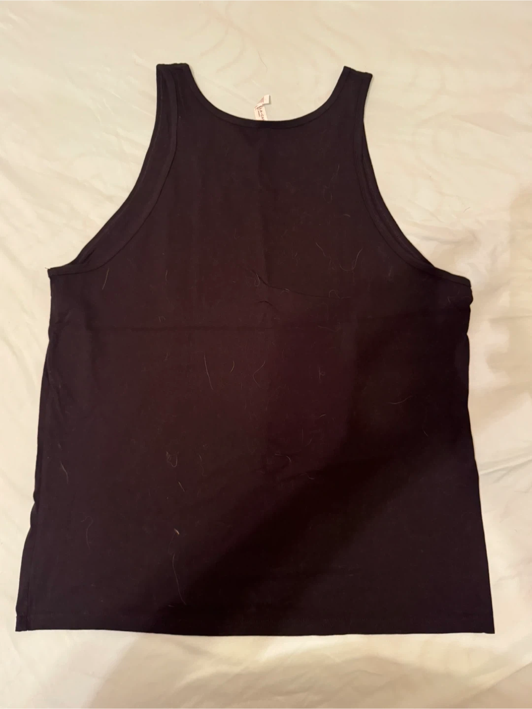 Selling a black men’s tank top with a "Perkis Power" design on the front.
