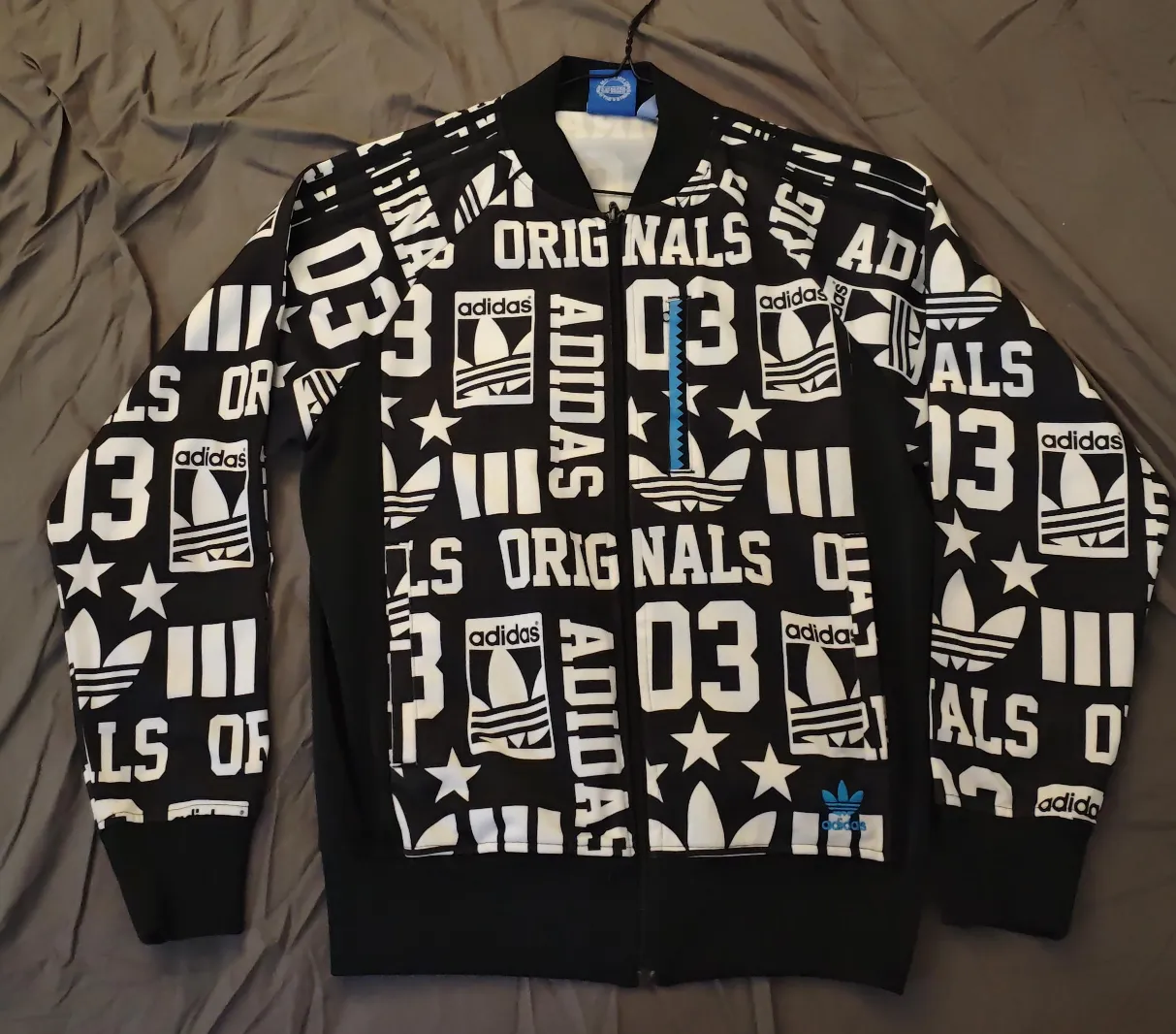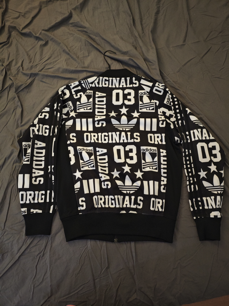 Adidas Originals jacket with a cool graphic print! It's in great shape and ready for a new home. Perfect for adding some style to your wardrobe. Size and material not indicated on the jacket.