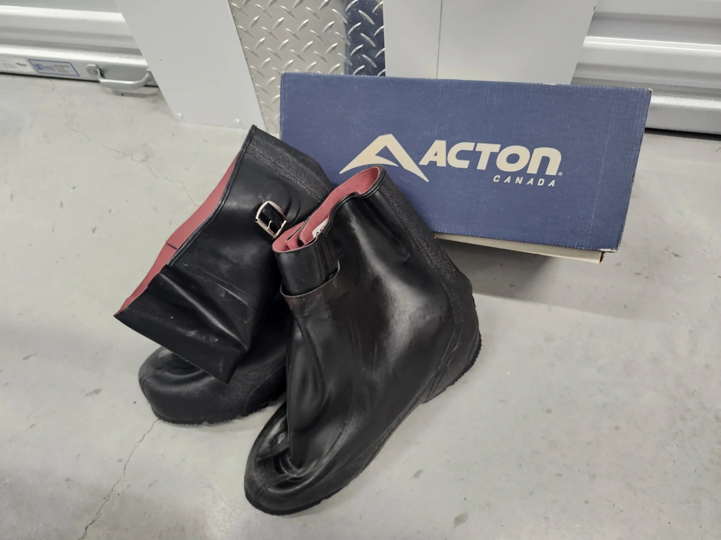 Selling a pair of Acton Canada galoshes in black, size 12. They are in good condition and come with the original box