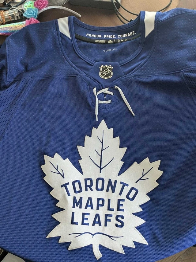 An XL Adidas Toronto Maple Leafs jersey. It has never been worn but does not have the tags still. Available for curbside pickup.
