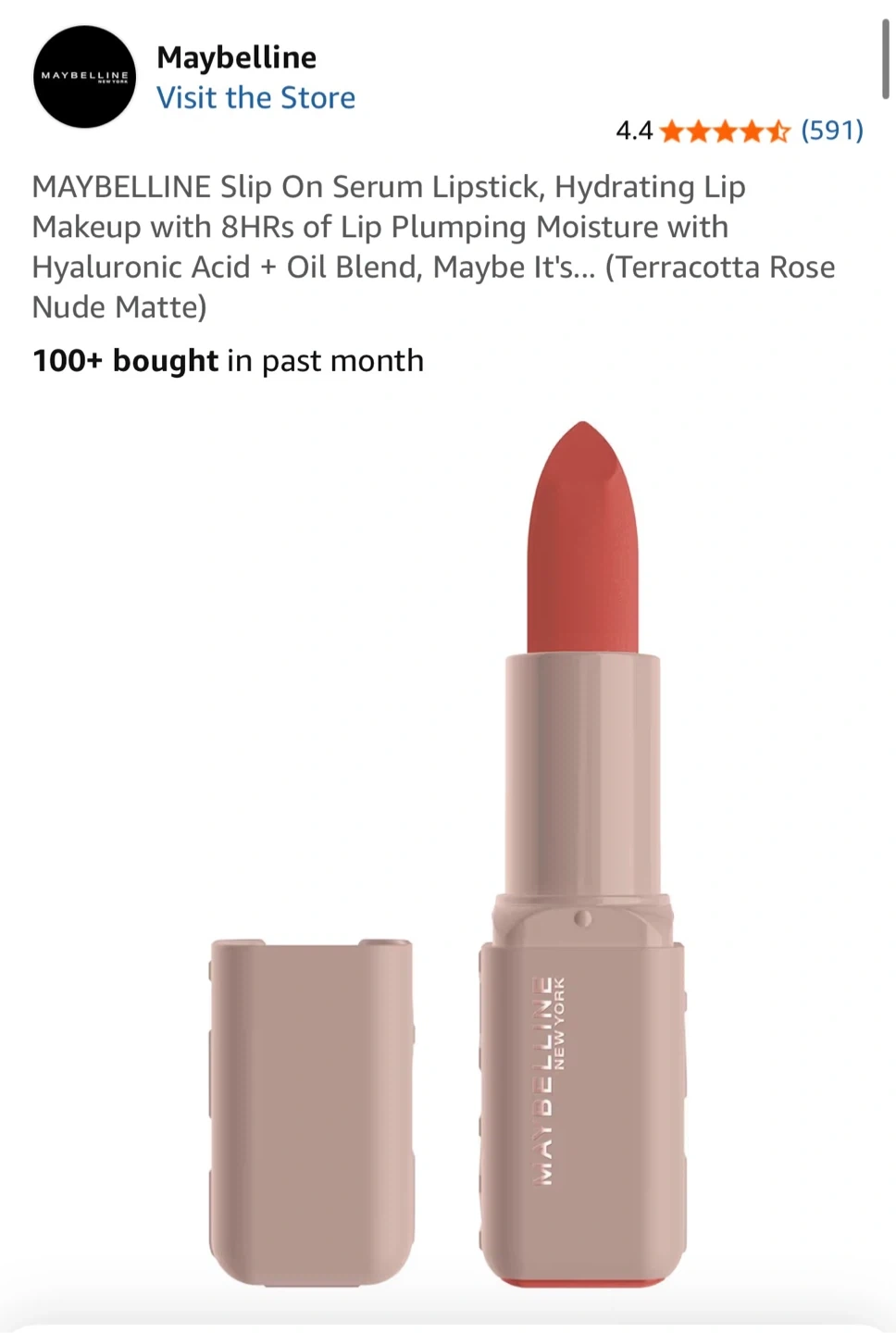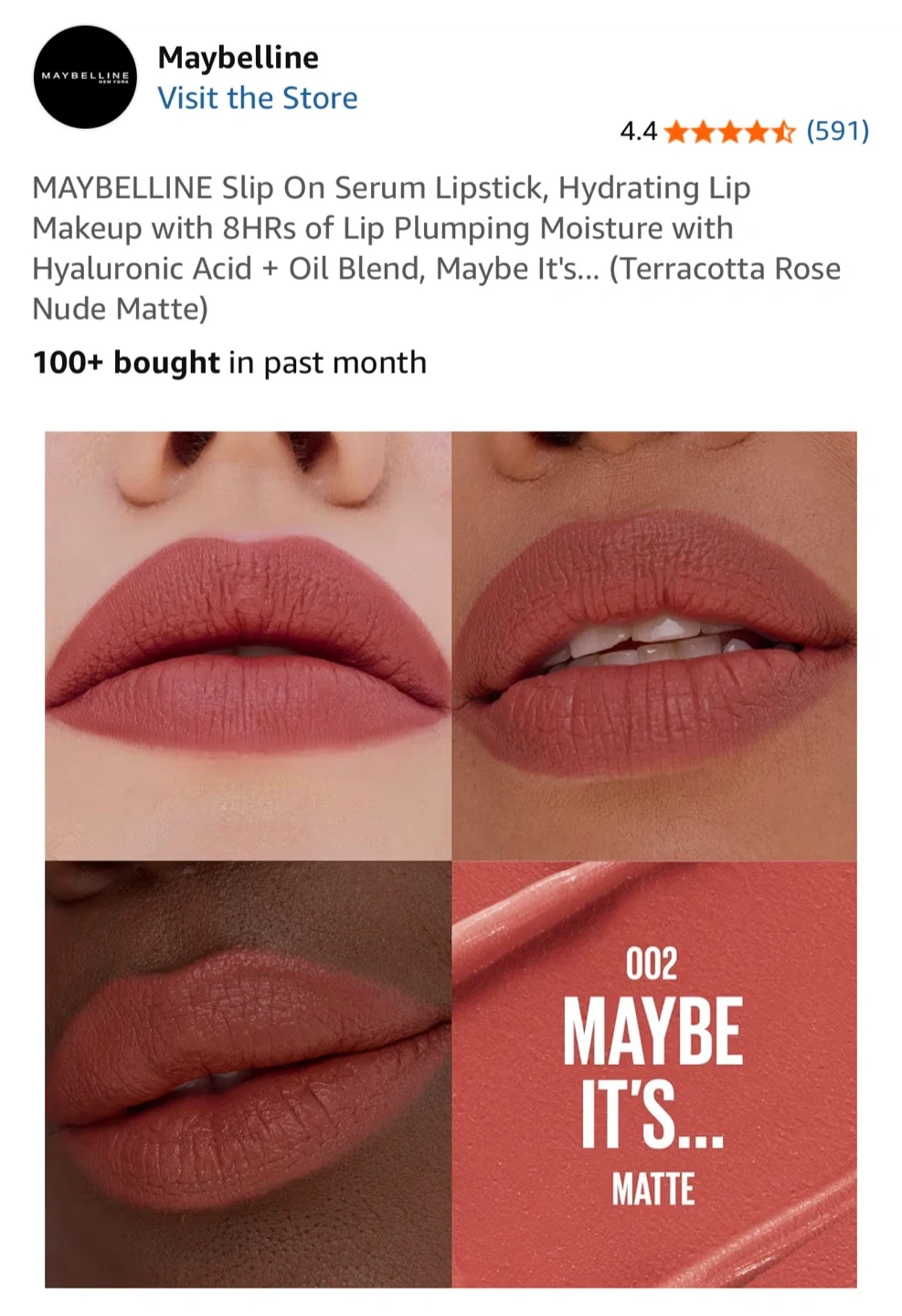 This is a Maybelline Slip On Serum Lipstick in shade 002, "Maybe It's Matte". It's a hydrating lipstick with a matte finish. The lipstick is a nude light brown / rosy matte shade. It’s so beautiful and so comfortable on the lips. Never used before. Retails for $15.79 in Shoppers Drugmart