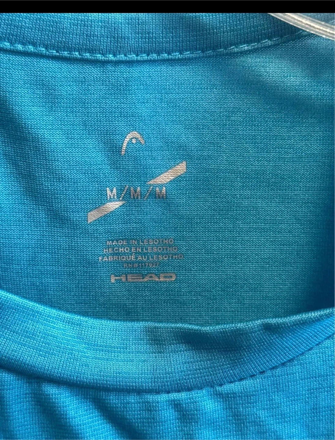 This is a blue t-shirt from Head. It's a size medium and made in Lesotho. The shirt has "the center great things happen here" graphic on the front.