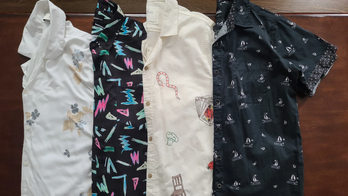Helping my brother clear out his closet. High-quality short sleeved dress shirts perfect for resorts, cruises, or winter getaways.