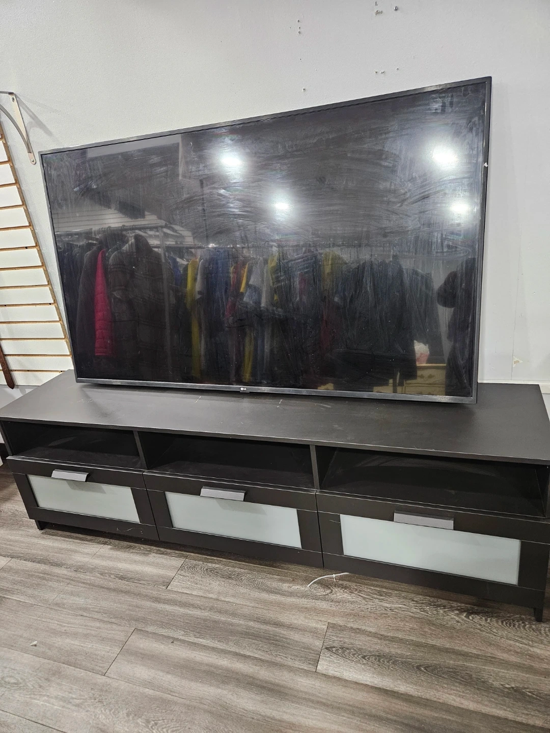 LG TV on Dark Brown TV Stand
