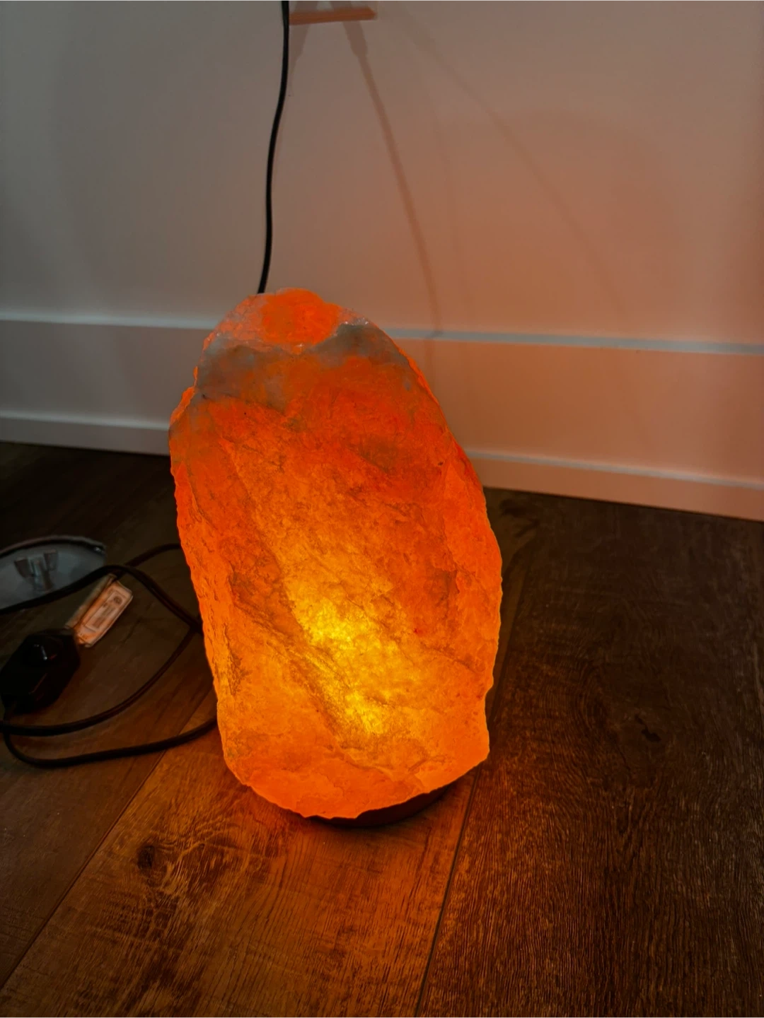 This is a natural Himalayan salt lamp. It's carved from authentic salt rock and emits a warm, ambient glow when lit. Provides a cozy atmosphere for any room.